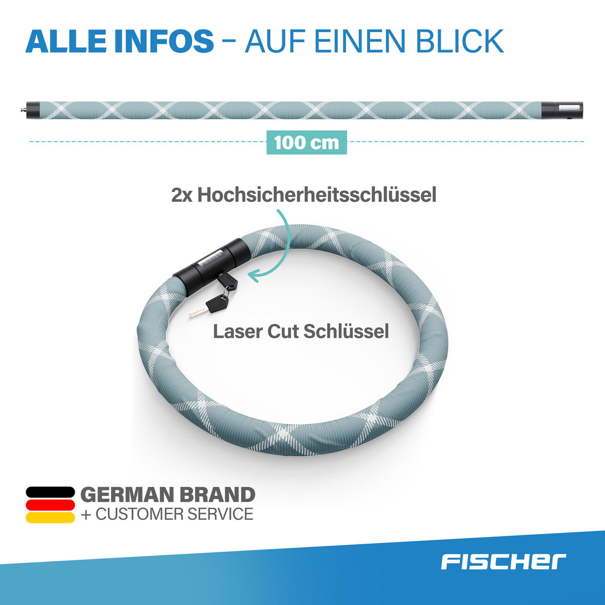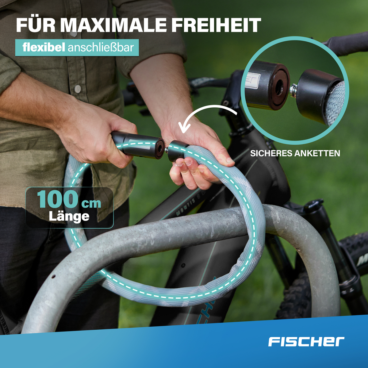 Die 6 mm starke Kette aus A3-gehärtetem Spezialstahl erreicht das Sicherheitslevel 8 und bietet einen wirksamen Schutz gegen Aufbruchversuche. Mit einer Länge von 100 cm lässt sich dein Fahrrad flexibel an festen Objekten wie Fahrradständern, Geländern oder Zäunen anschließen. Die Kette bleibt dabei formstabil, was das Anschließen besonders einfach und schnell macht.