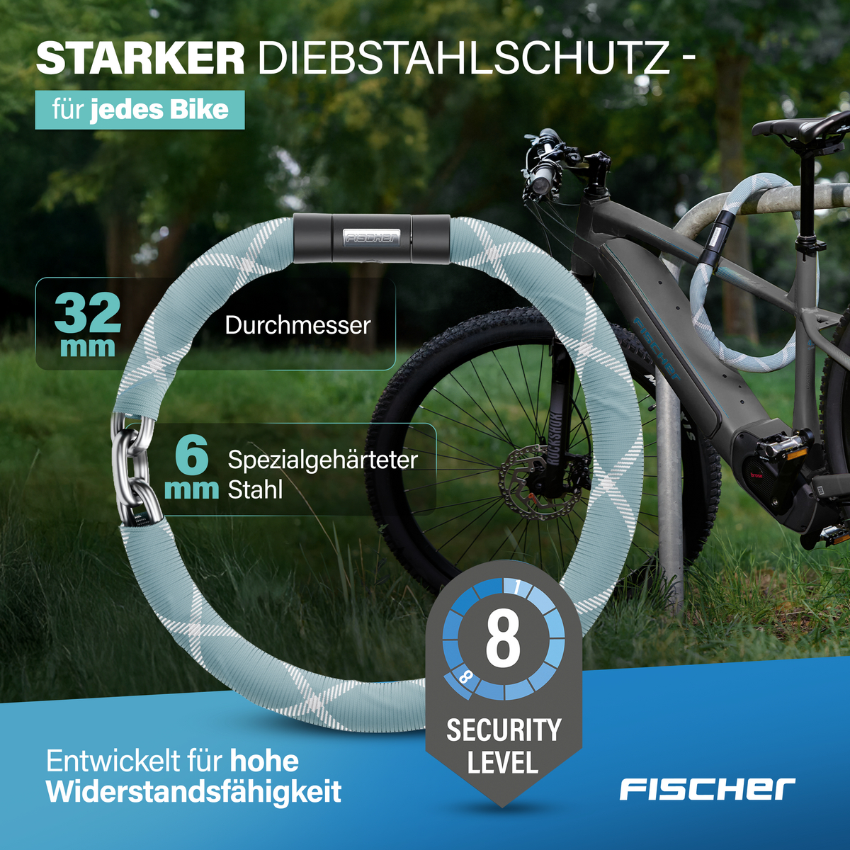 Das FISCHER Kettenschloss PROTEC SILENCE bietet zuverlässigen Diebstahlschutz für hochwertige Fahrräder und E-Bikes. Es wurde speziell für den regelmäßigen Einsatz im Alltag und auf Touren entwickelt und verbindet hohe Sicherheit mit durchdachtem Komfort.
