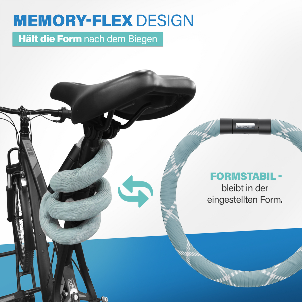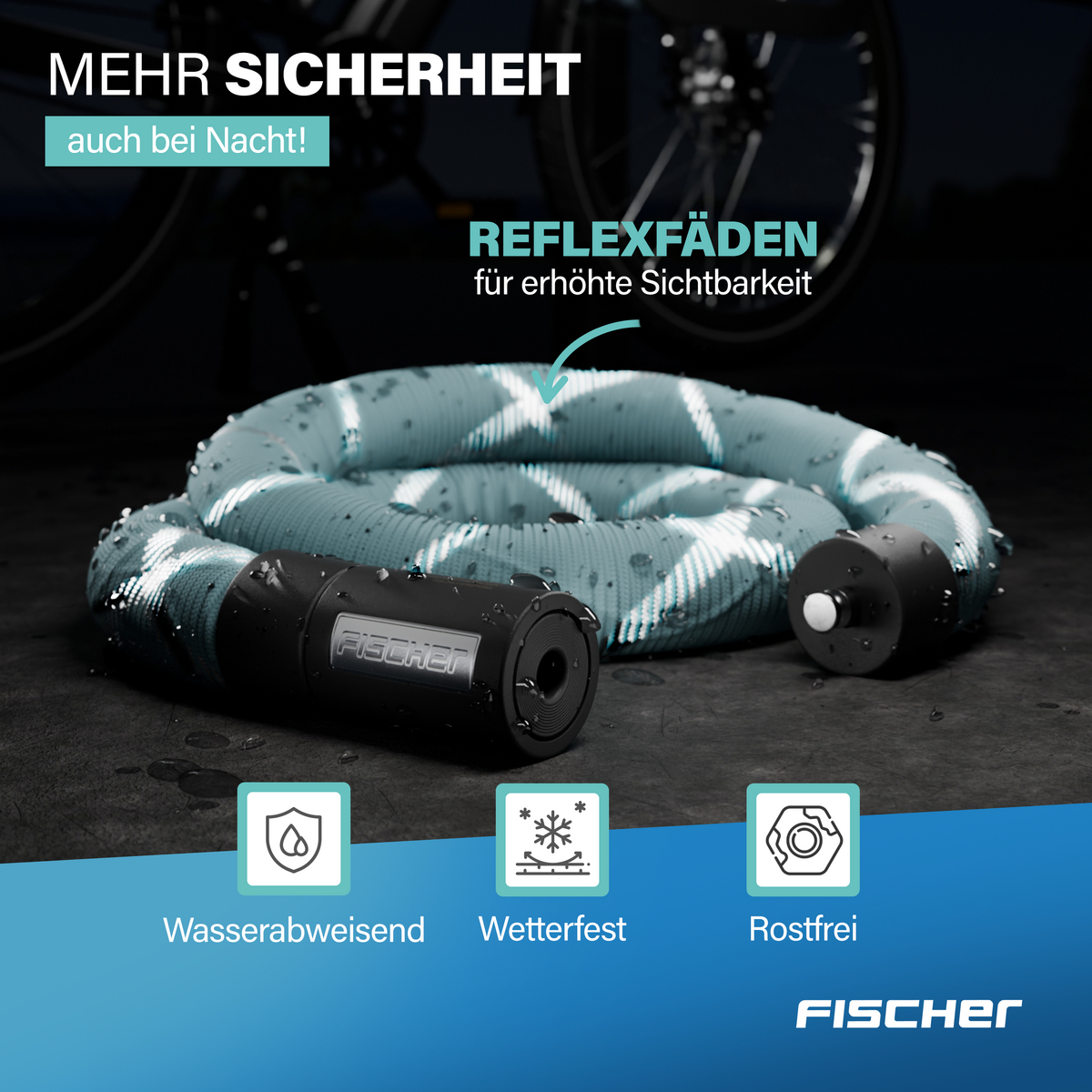 In die Ummantelung integrierte Reflexfäden erhöhen die Sichtbarkeit bei Dunkelheit. Das verbessert die Sicherheit im Straßenverkehr, insbesondere beim Abstellen am Straßenrand oder in schlecht beleuchteten Bereichen. Das Schloss wird mit zwei Hochsicherheits-Schlüsseln geliefert, sodass jederzeit ein Ersatz griffbereit ist.