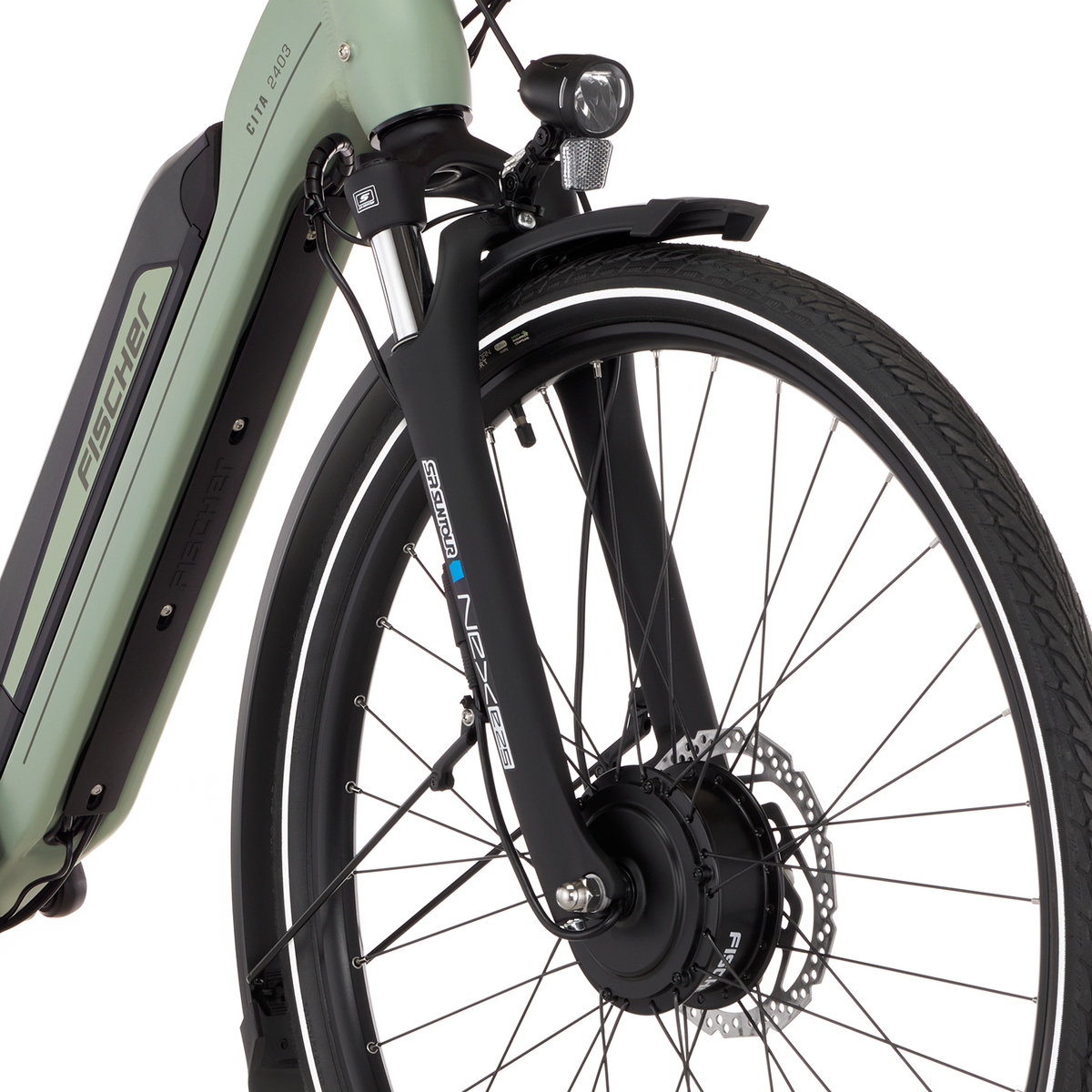 Erlebe mühelose Fahrten durch die Stadt mit dem Cita 2403. Passend für jede Verkehrslage bietet dir der Motor den optimalen Modus für eine angenehme Unterstützung. Der verbaute Akku bietet dir eine maximale Reichweite von bis zu 120km und kann einfach seitlich herausgenommen werden und separat zum Bike aufgeladen werden. Dein Gang lässt sich durch die verbaute Nabenschaltung durch den Drehgriff am Lenker, sogar im Stand an der roten Ampel, wechseln. Durch die helle Lichtanlage und die Reflexstreifen an deinen Reifen hast du nicht nur optimale Sicht, sondern wirst auch besser von anderen Verkehrsteilnehmern gesehen. Praktisch ist ebenso das verbaute Rahmenschloss, was dir ein sicheres Abstellen des Rades zu jeder Zeit ermöglicht. Verstaue Taschen oder Einkäufe ganz einfach auf dem Gepäckträger oder montiere dir nach Belieben einen Korb. Mit deinem Cita 2403 bist du der Hingucker in der Stadt.