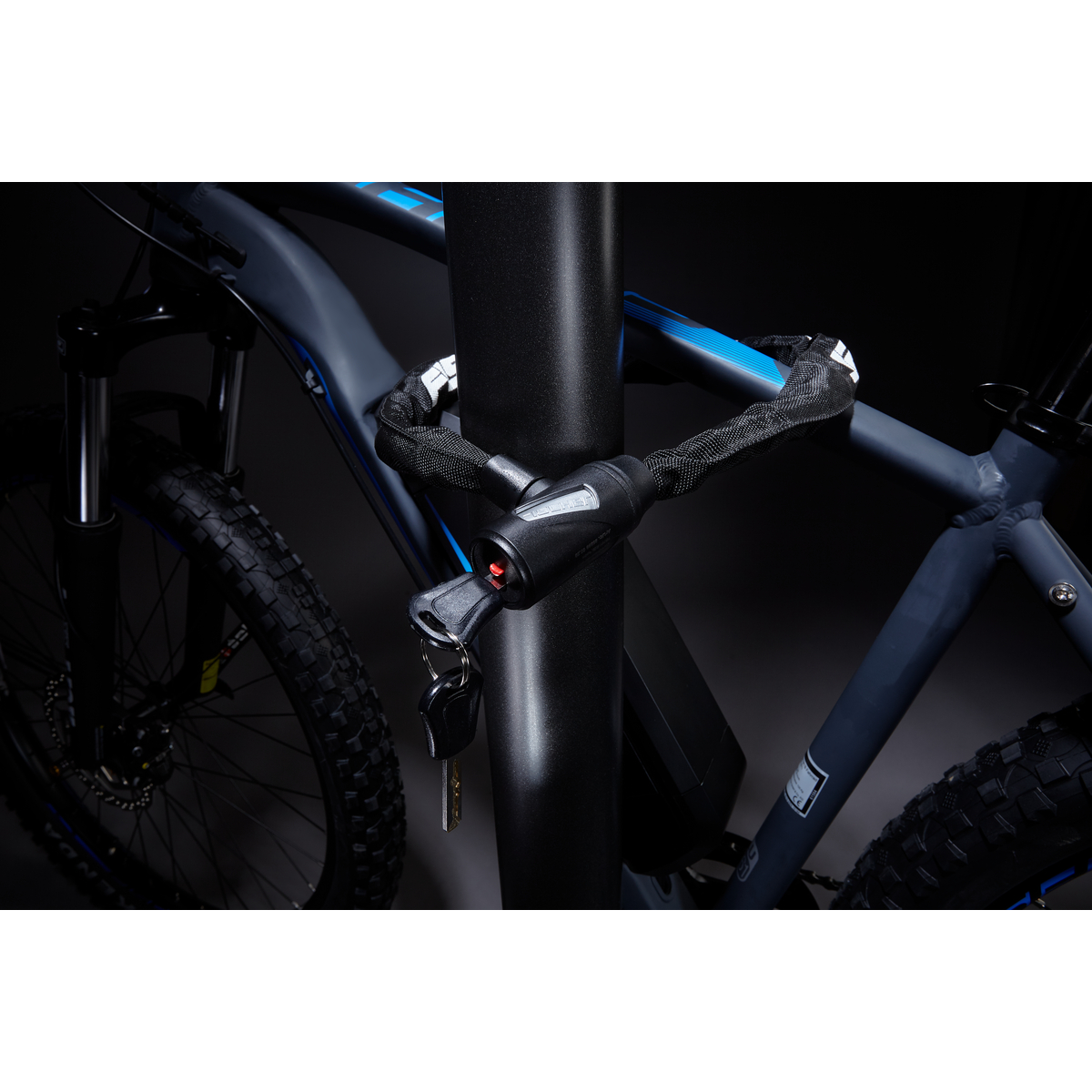 Wir machen es Fahrraddieben schwer! Mit dem richtigen Fahrrad-Schloss sichern Sie Ihr Rad vor Diebstahl. Eine gängige Variante ist ein Kettenschloss, es ist besonders praktisch da nur ein Ende der Kette verriegelt werden muss. Es lässt sich durch kompaktes Zusammenlegen der Kette um das Sattelstützrohr bequem transportieren. Das FISCHER Kettenschloss ist 90cm lang, ist mit Stoff überzogen (Schutz vor Kratzern) und besitzt eine Staubschutzkappe am Schließkörper.