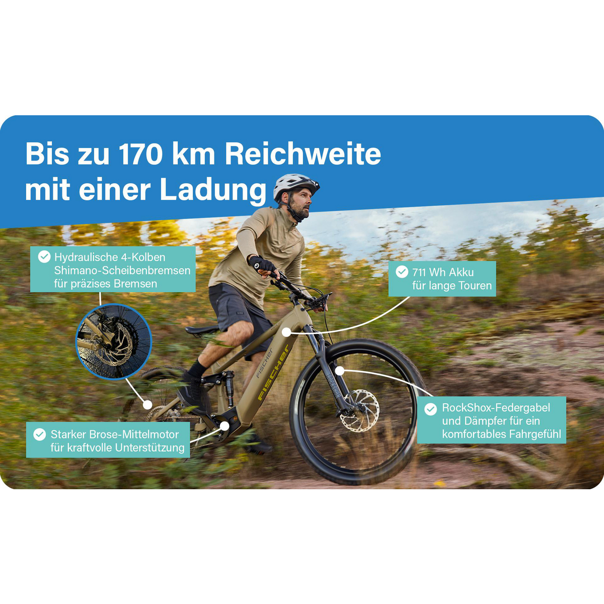 FISCHER E-MTB E-Bike MONTIS 10.0i Fully ULTIMATE - oliv, RH 46 cm, 711 Wh