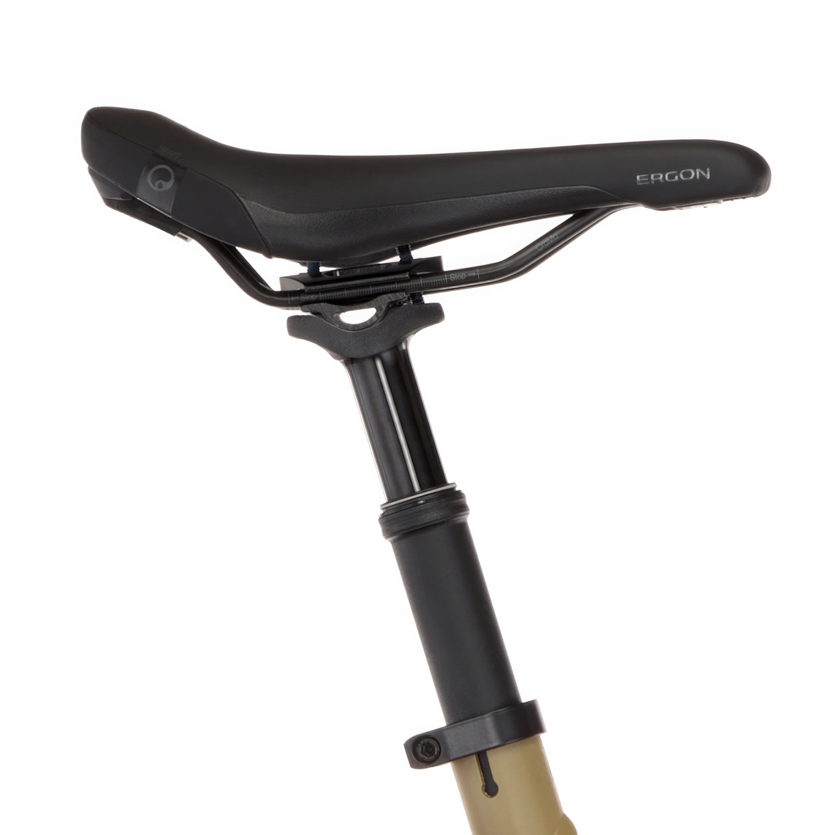 Durchdachtes Design – Die absenkbare Sattelstütze und das schlichte Olive-matte Design vereinen Funktionalität mit modernem Look.