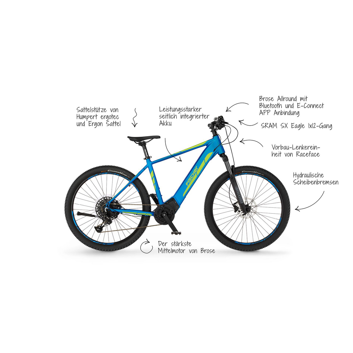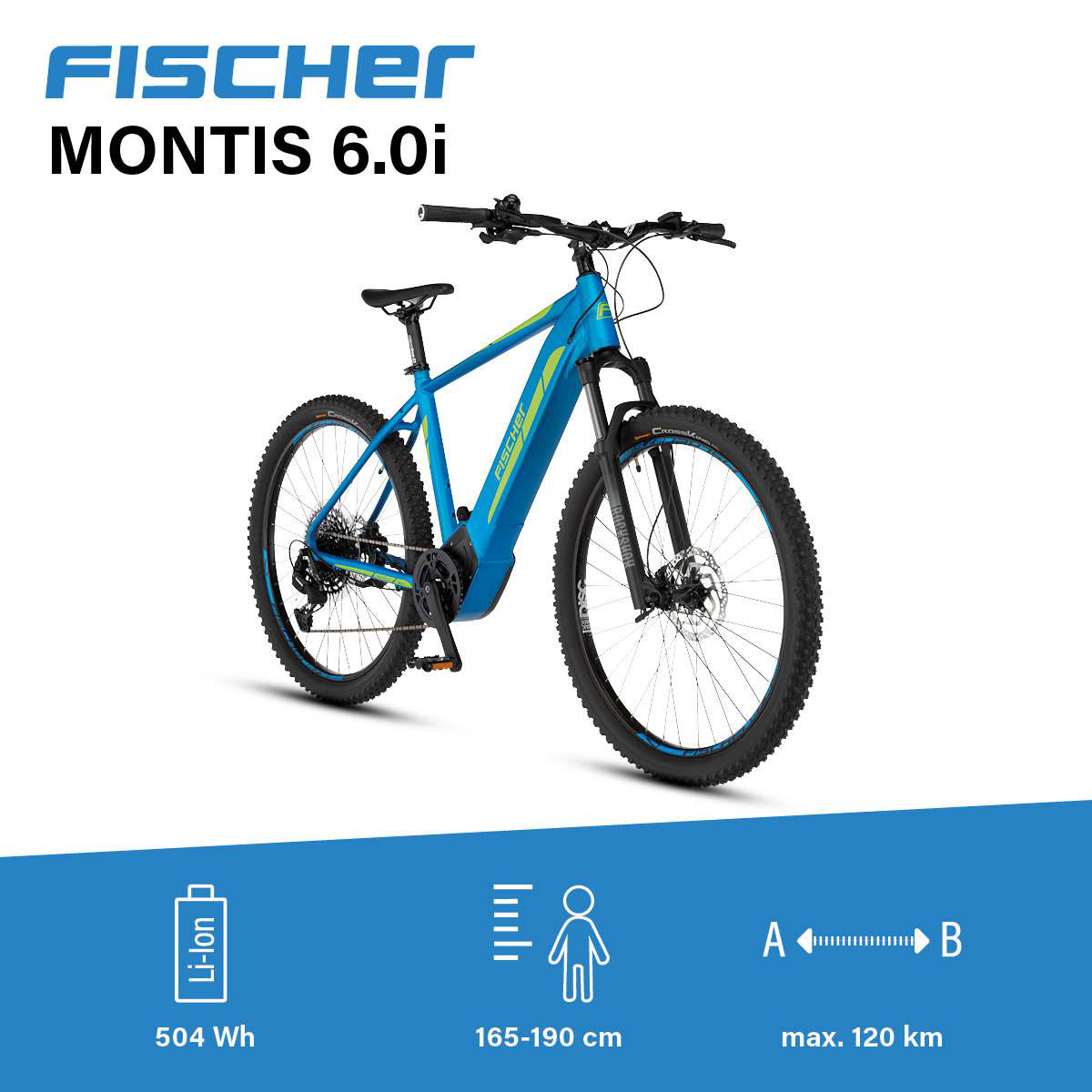 Das FISCHER MONTIS 6.0i ist mit seinen hydraulischen Scheibenbremsen, der besonders stabilen Sattelstütze von Humpert ergotec und dem angenehm sportlichen Ergon Sattel die perfekte Wahl für deine abenteuerlichen Profi-Trailrides. Mit nur 25 kg kg Gewicht und einer Belastbarkeit von bis zu 135 kg ist es robust und dennoch leicht zu transportieren. Die besonders hochwertige RockShox RECON TK QLC Federgabel und die sehr präzise SRAM 12-Gang Eagle SX garantieren eine sportliche und schnelle Fahrt. Der leistungsstarke 36 V, 504 Lithium-Ionen-Akku bietet dir bis zu 120 km* Reichweite und ist durch die vollintegrierte Bauweise unsichtbar im Rahmen versteckt, gut geschützt und trotzdem einfach entnehm- und aufladbar. Zusätzlich bietet dir FISCHER eine 36-monatige Garantie auf alle vollintegrierten Pedelec Akkus. Mit Hilfe des großen Brose Brose Allround CAN Bus Displays kannst du die Unterstützung des besonders kraftvollen Brose Drive S Alu Mittelmotors mit 90Nm Drehmoment sehr leicht selbst steuern und erhältst alle wichtigen Informationen auf einen Blick - Fahrspaß garantiert.
