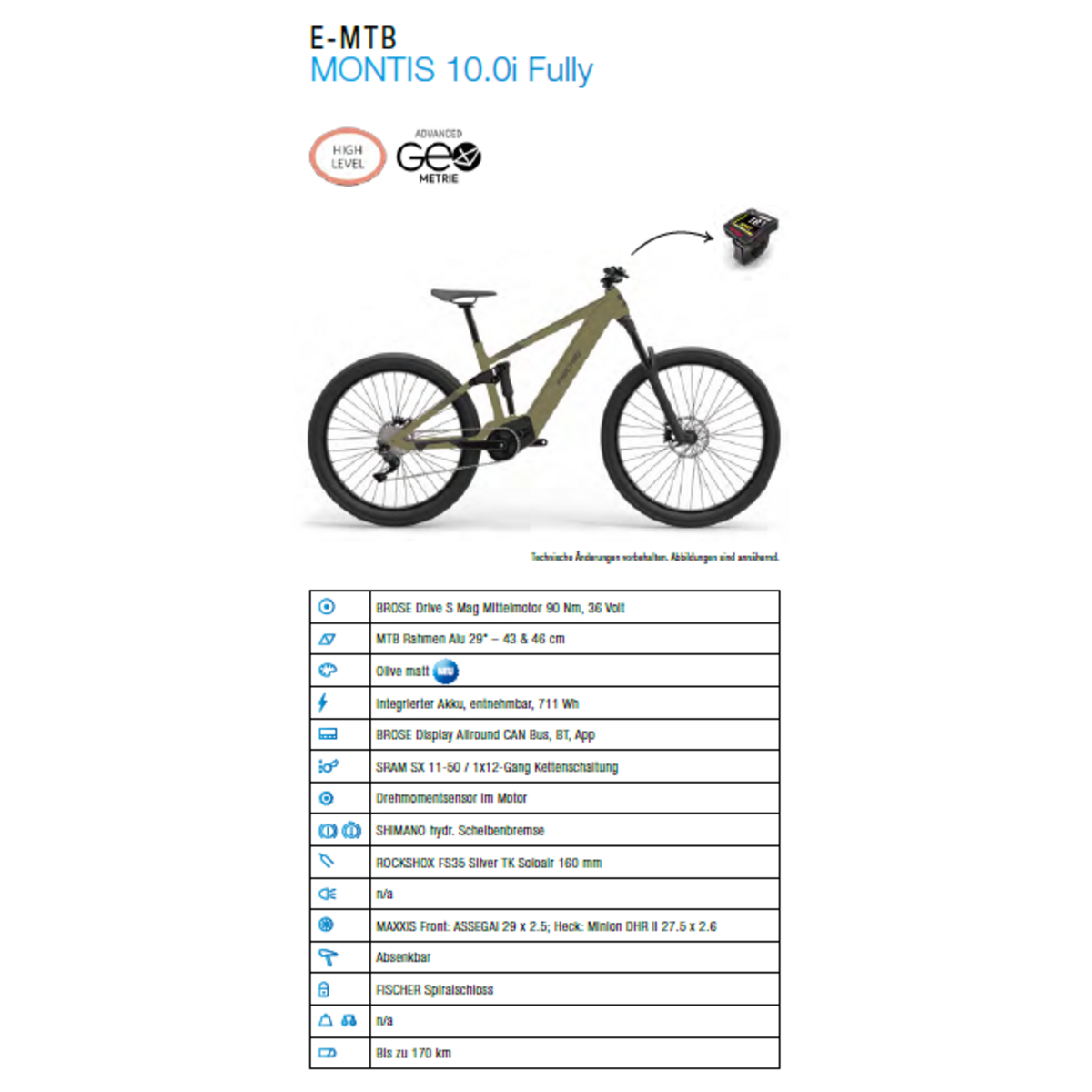 MTB E-Bike MONTIS 10.0i Fully oliv, RH 46 cm, 711 Wh