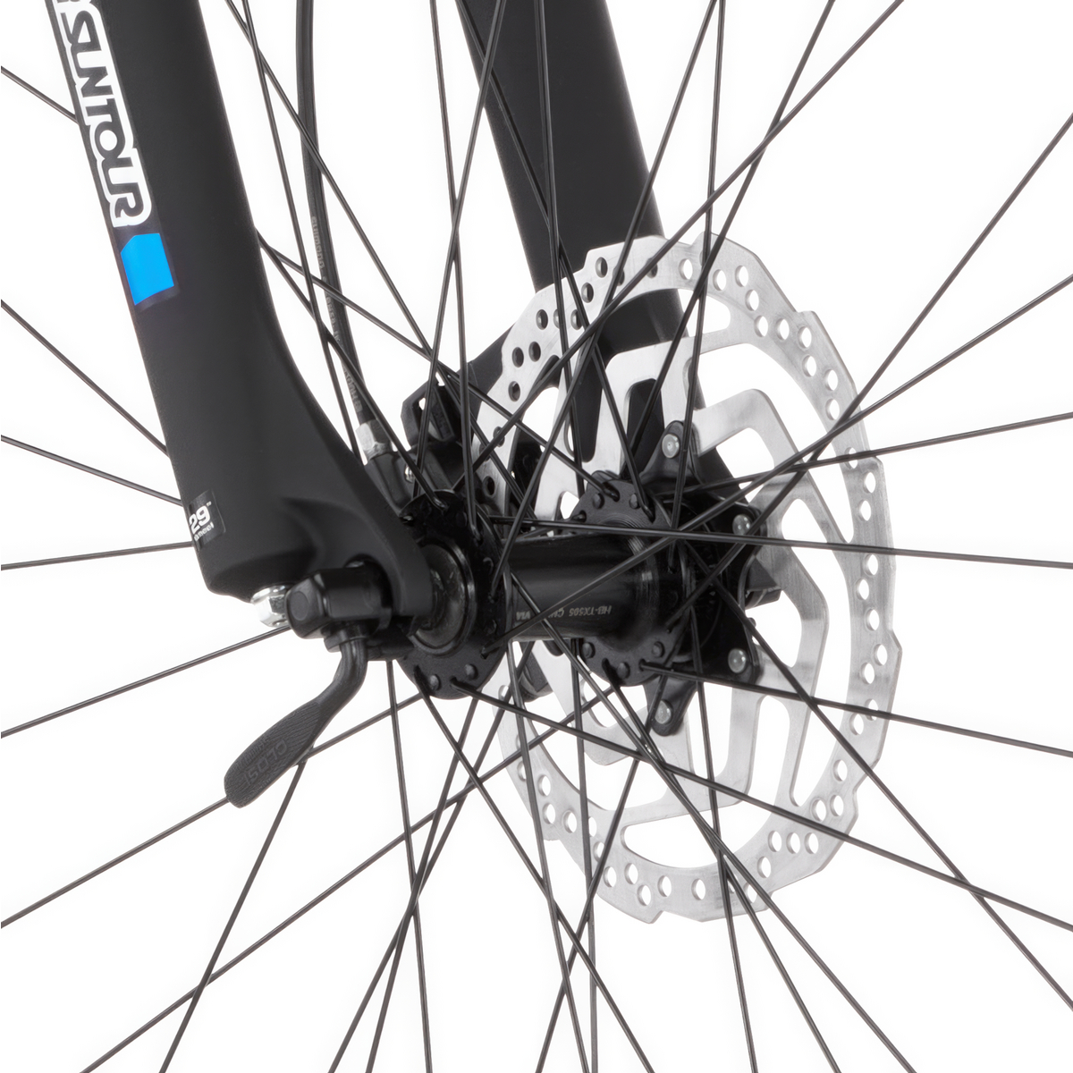 Die SHIMANO 10-Gang-Kettenschaltung bietet eine breite Übersetzung für Anstiege und schnelle Abfahrten. Geschaltet wird über einen Daumenschalthebel mit Ganganzeige, wodurch Gangwechsel präzise und intuitiv erfolgen. Die SUNTOUR Federgabel gleicht Unebenheiten aus und erhöht die Kontrolle auf unebenem Untergrund.