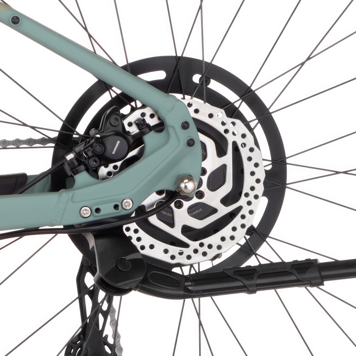 Hydraulische SHIMANO Scheibenbremsen sorgen für zuverlässige Verzögerung und gute Dosierbarkeit, auch bei Nässe oder auf Gefällestrecken. Robuste Reifen mit griffigem Profil unterstützen die Traktion im leichten Gelände. Ergonomische Griffe, ein sportlicher Sattel, ein breiter Lenker und ein kurzer Vorbau fördern eine kontrollierte, dynamische Sitzposition.