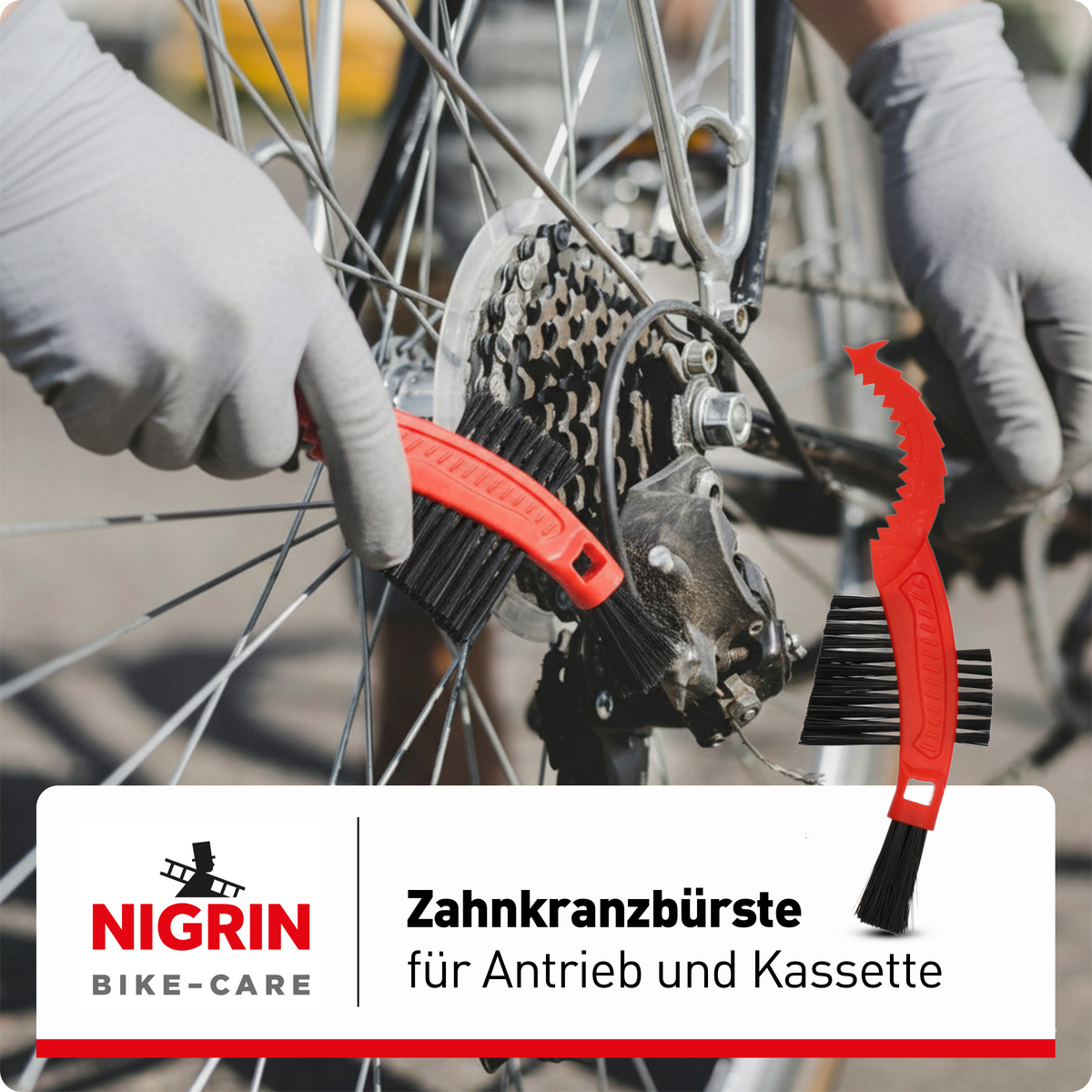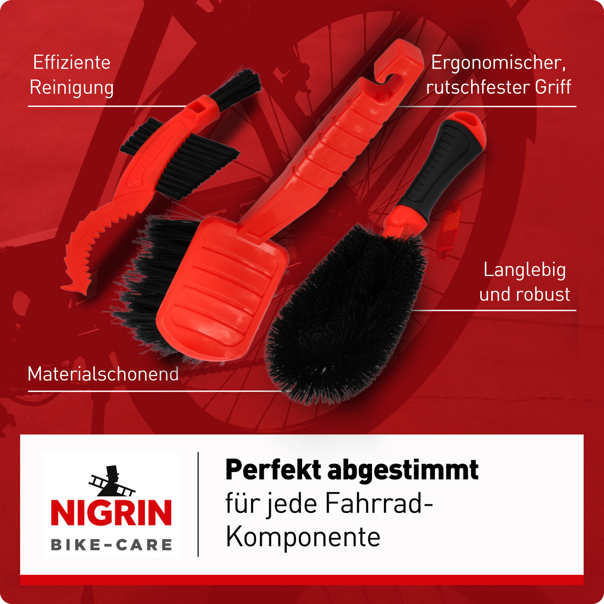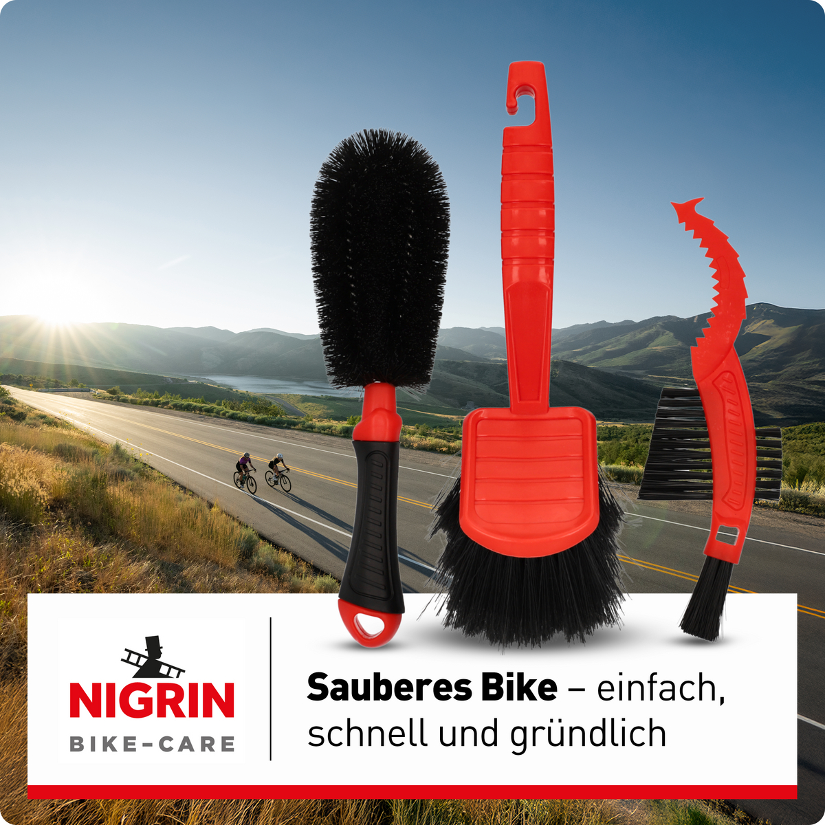 Welche Bürsten sind im NIGRIN BIKE CARE 3-teiligen Bürstenset enthalten und wofür eignen sie sich?