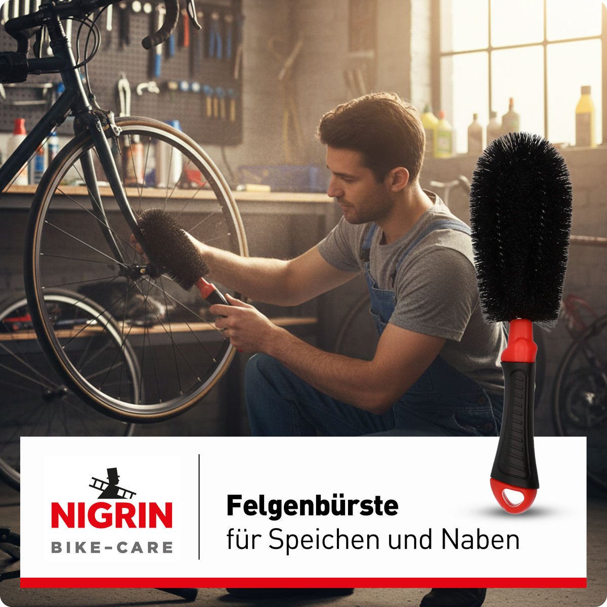 - Felgenbürste für Felgen, Speichen, Laufräder und Naben