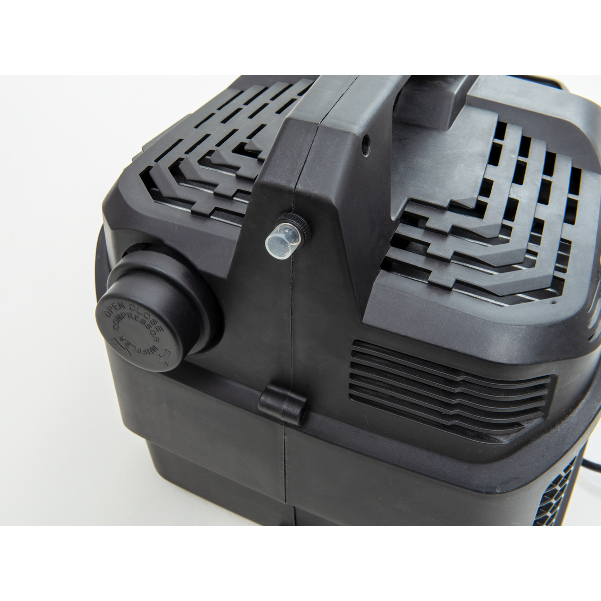 Der 6-Liter-Kessel stellt Druckluft kompakt und effizient bereit, auch bei begrenztem Platzangebot. Dank Anschluss an eine handelsübliche 230V-Steckdose ist der Kompressor sofort einsatzbereit. Die kompakte Bauweise, das geringe Gewicht und der stabile Stand erleichtern Transport und Handhabung in der Werkstatt oder unterwegs.