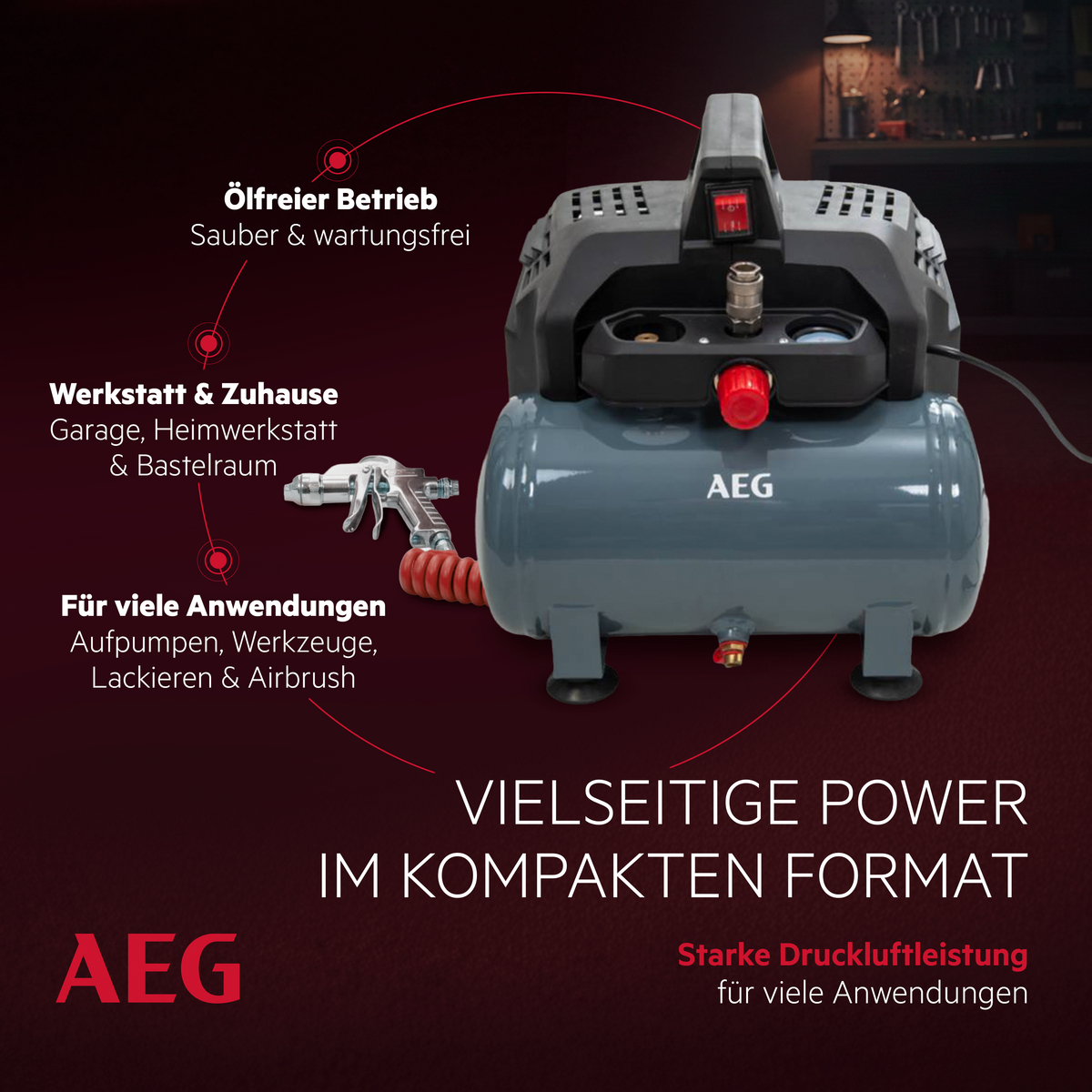 Der AEG KL6 richtet sich an Heimwerkerinnen, Bastler und professionelle Anwender, die eine leise, wartungsarme und leistungsstarke Druckluftlösung suchen.