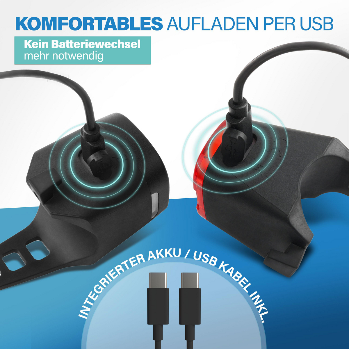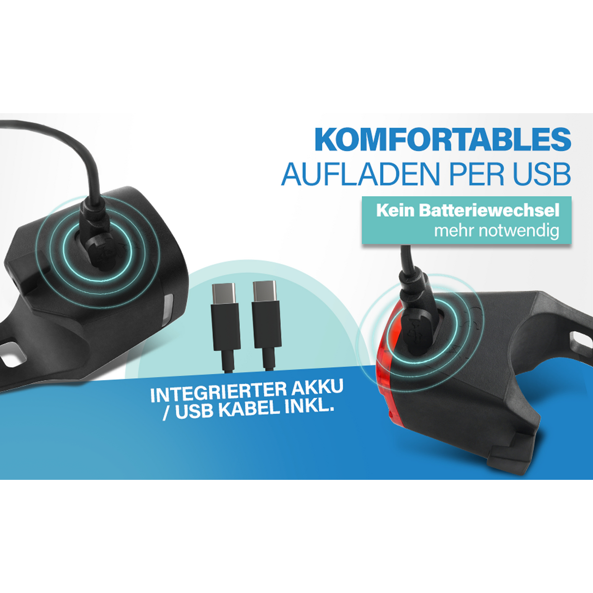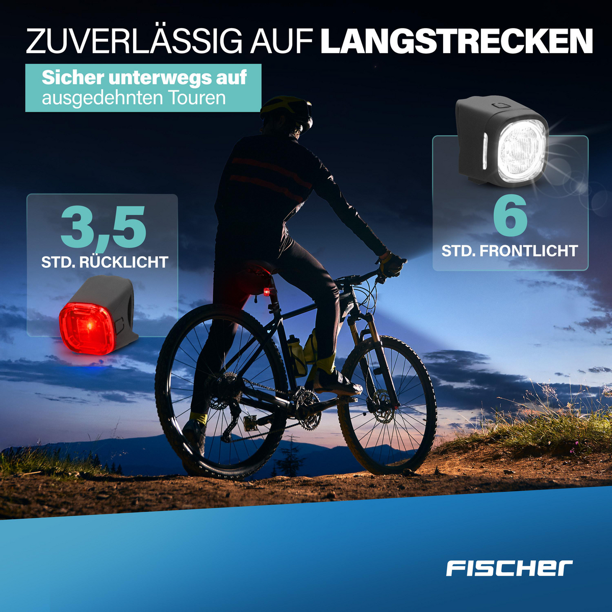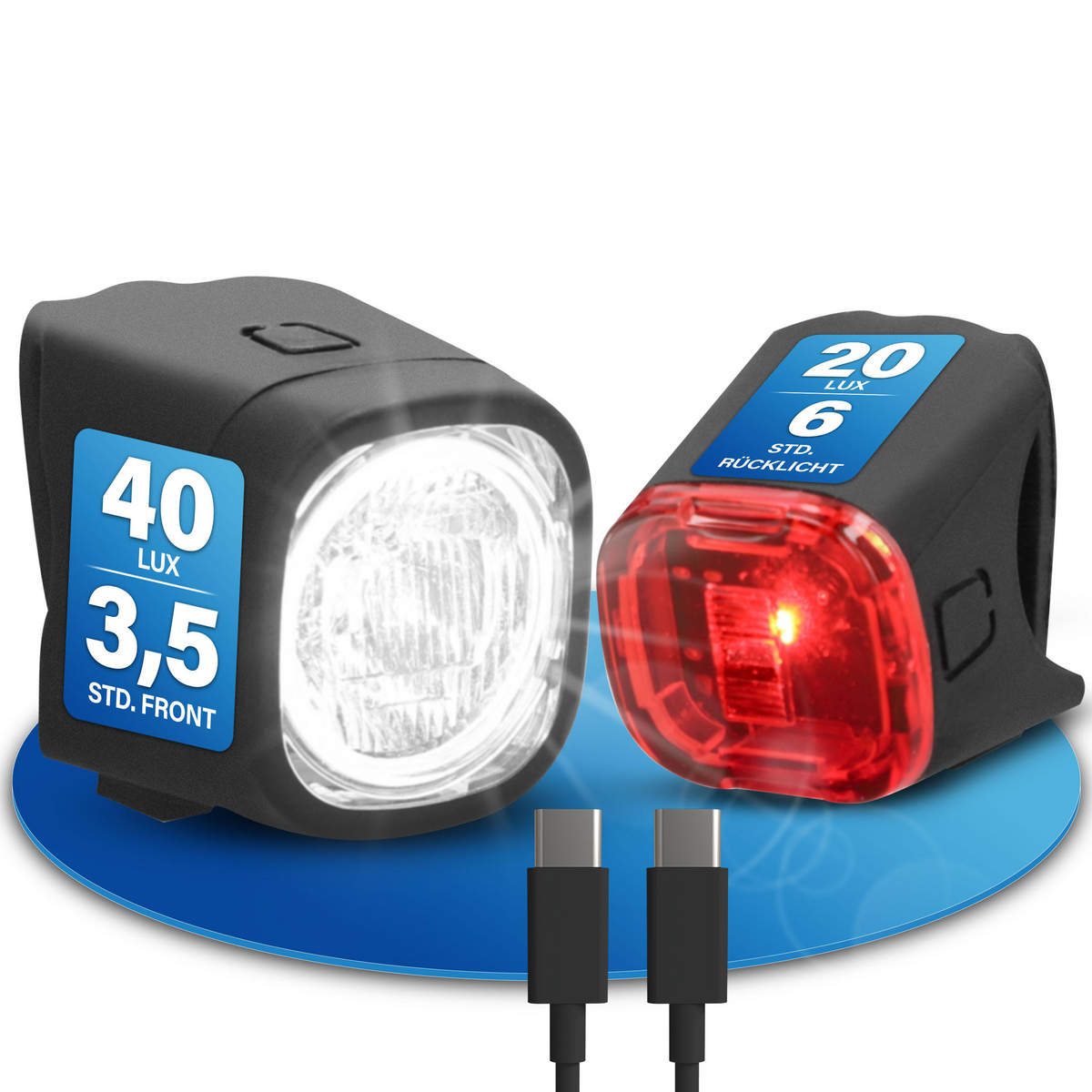Dank des integrierten Akkus und USB-Ladefunktion sparen Sie sich Einwegbatterien und schonen die Umwelt. Die Leuchtdauer von bis zu 3,5 Stunden vorne und 6 Stunden hinten sorgt für zuverlässige Beleuchtung – ob auf dem Arbeitsweg oder bei längeren Ausfahrten.