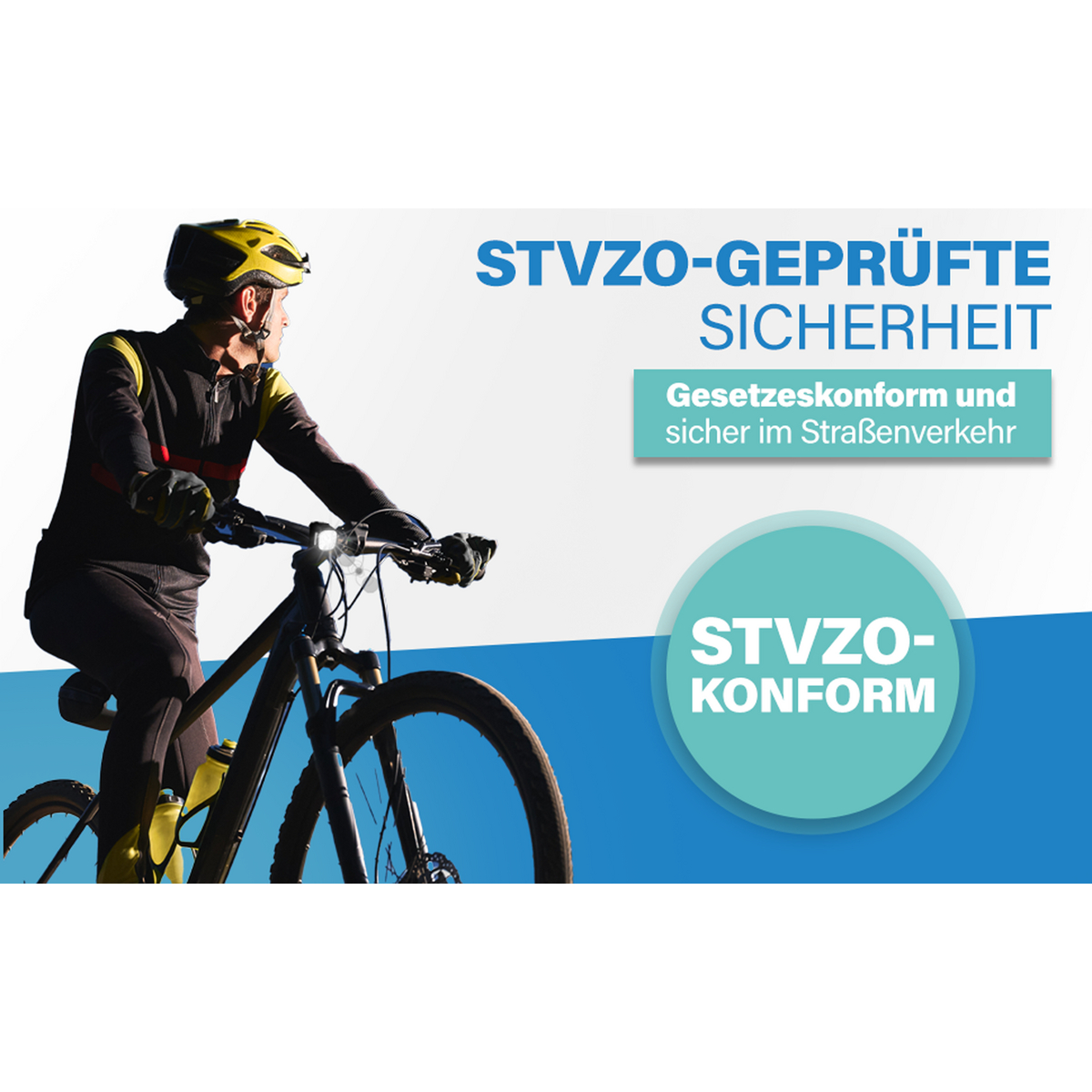 Das robuste, IP44-geschützte Gehäuse hält auch Regenfahrten stand. Selbstverständlich ist das Set StVZO-zugelassen – für maximale Sicherheit und gesetzliche Konformität auf allen Wegen.