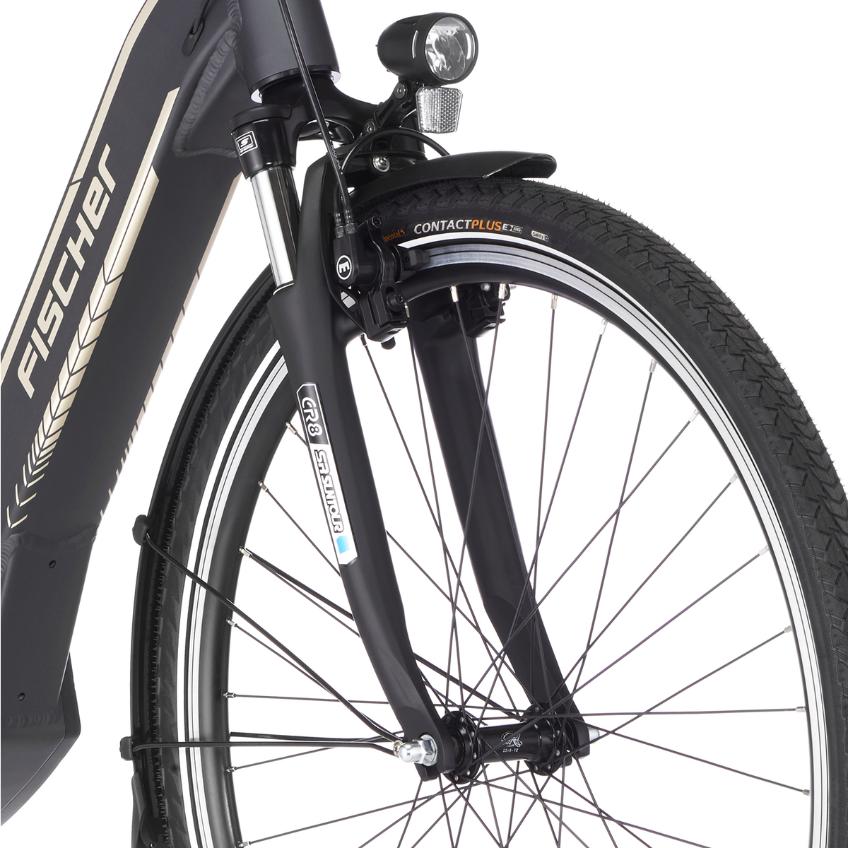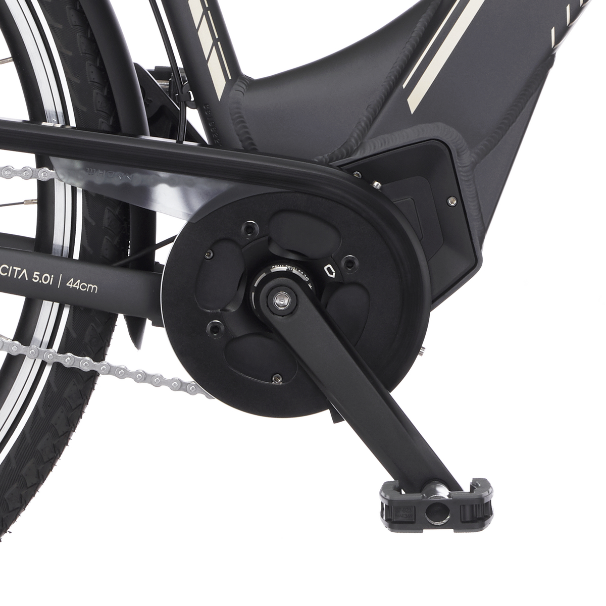 Das FISCHER CITA 5.0i ist mit seinem komfortablen Tiefeinstieg, gefederter Sattelstütze, hydraulischer Scheibenbremse von MAGURA und stabilem Gepäckträger die perfekte Wahl für deinen Alltag in der Stadt. Mit nur 26 kg Gewicht und einer Belastbarkeit von bis zu 150 kg ist es robust und leicht zu transportieren. Die hochwertige SR Suntour CR 8V Federgabel und die wartungsfreie Shimano -Gang NEXUS sorgen für ein besonders angenehmes Fahrgefühl. Der leistungsstarke 36 V, 504 Lithium-Ionen-Akku bietet dir bis zu 120 km* Reichweite und ist durch die vollintegrierte Bauweise unsichtbar im Rahmen versteckt, gut geschützt und trotzdem einfach entnehm- und aufladbar. Zusätzlich bietet dir FISCHER eine 36-monatige Garantie auf alle vollintegrierten Akkus. Mit Hilfe des modernen Brose Brose Allround CAN Bus Displays kannst du die Unterstützung des dynamischen und leisen Brose Drive C Alu Mittelmotors mit 50Nm Drehmoment leicht selbst steuern - Fahrspaß garantiert.
