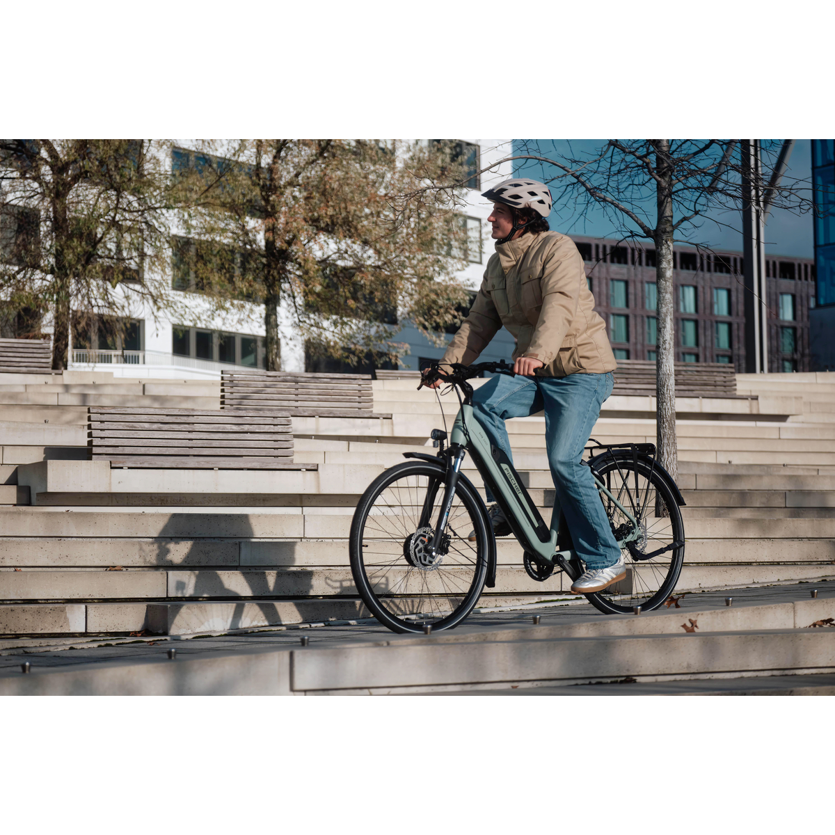 Ob zur Arbeit, zum Einkaufen oder für entspannte Touren durch die Stadt – mit dem FISCHER Drive Frontmotor mit 40 Nm Drehmoment genießt du eine dynamische Fahrt mit individuell wählbaren Unterstützungsmodi.