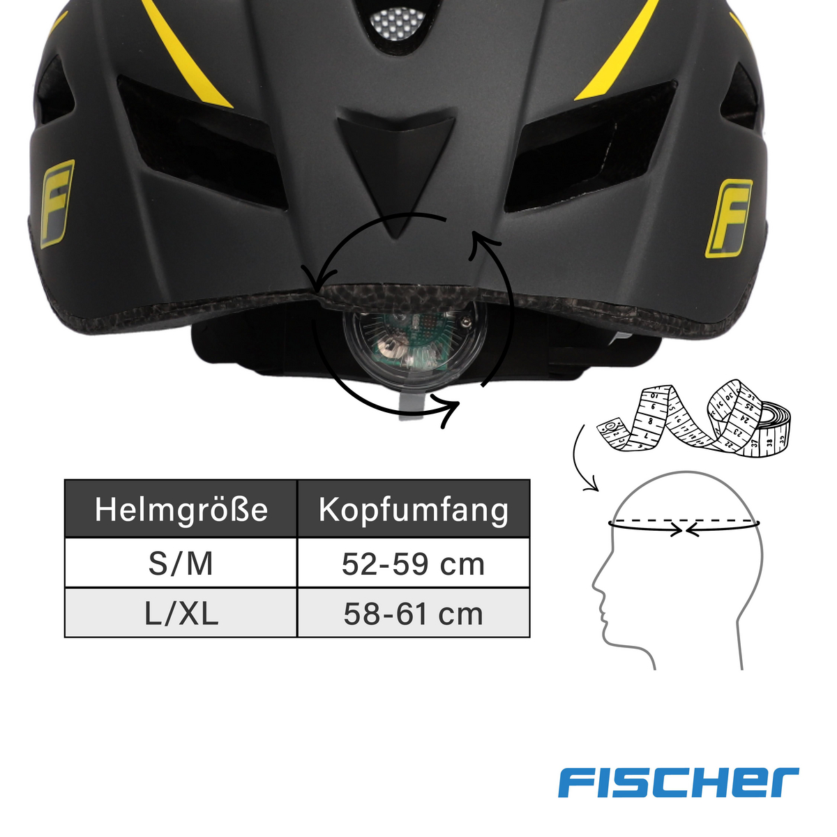 Ich Kopfgröße 57 und der Helm passt perfekt leucht einzustellen und das Led Licht hinten am Helm super