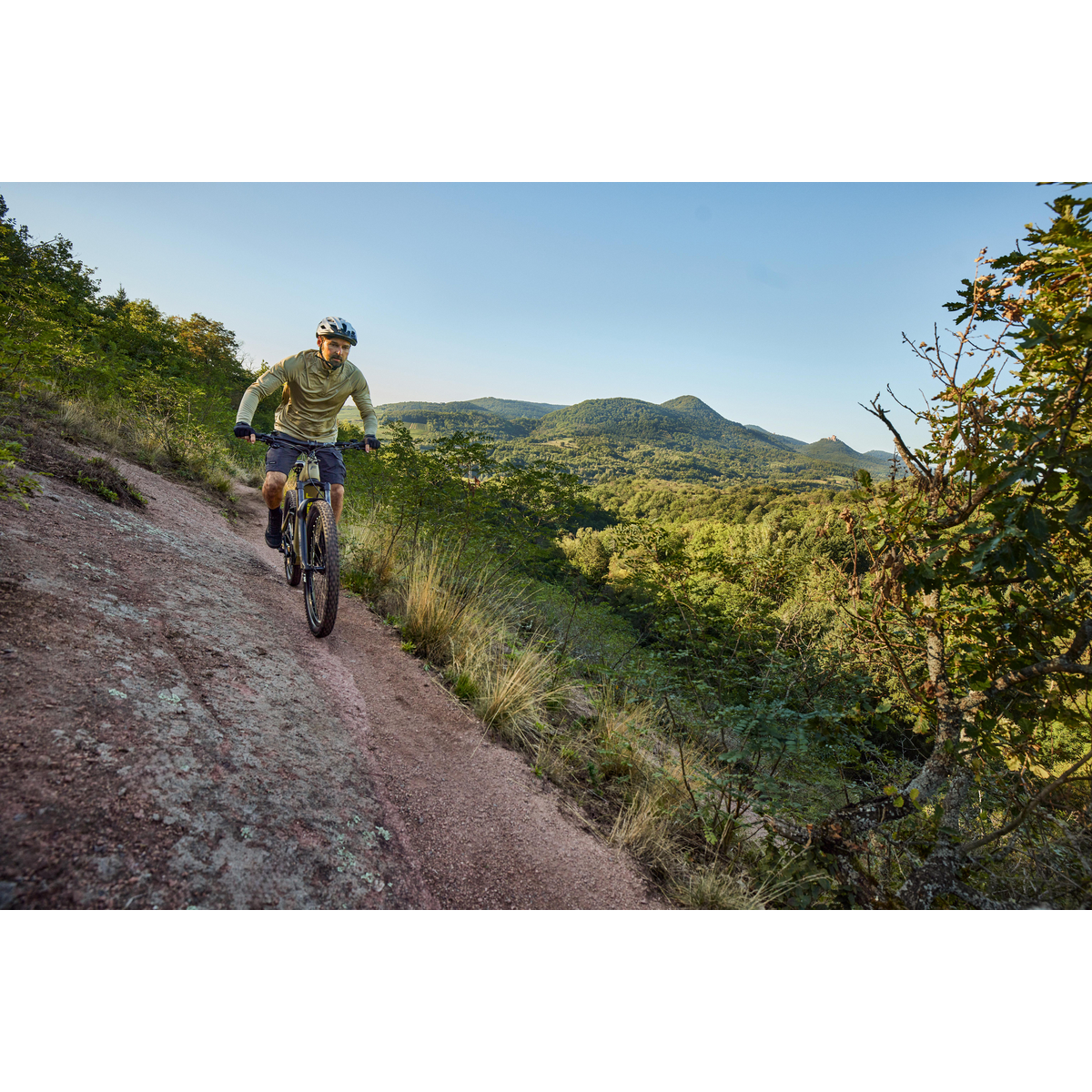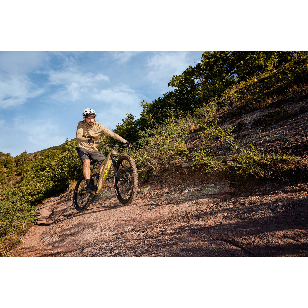 Dank absenkbarer Sattelstütze passt du die Sitzhöhe blitzschnell an und behältst jederzeit die volle Kontrolle. Optisch überzeugt das Bike durch sein edles Design in Olive matt – ein Look, der Kraft und Eleganz verbindet.