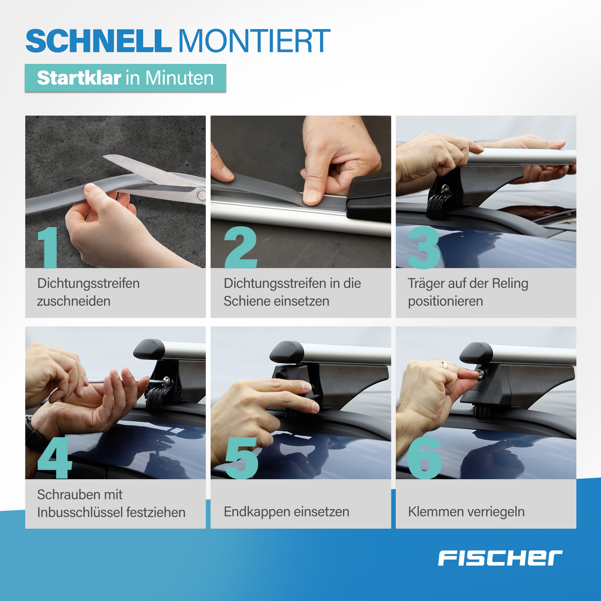 - EINFACHE MONTAGE: Da der Relingträger vormontiert ist, ist eine schnelle Anbringung auf dem Auto möglich
