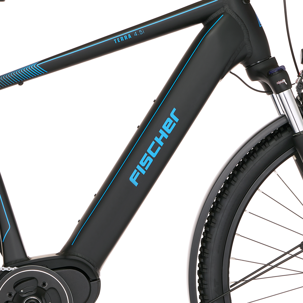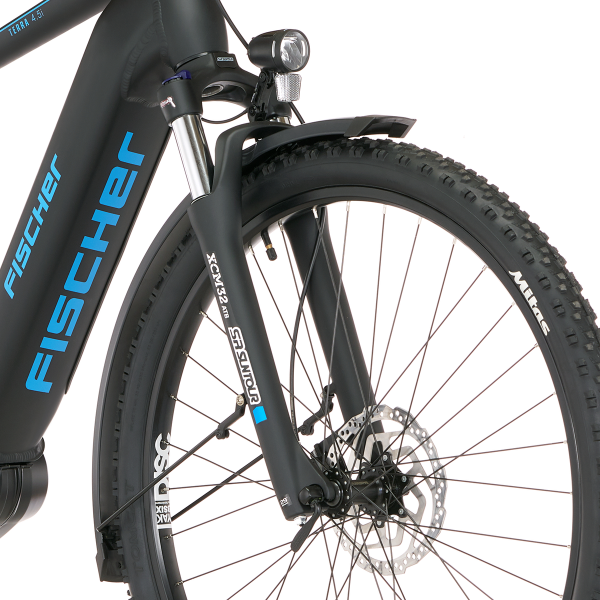 Ob Asphalt oder Schotterpiste, das All-Terrain Bike fühlt sich mit seinen 54 mm breiten Reifen 54 mm auf nahezu jedem Untergrund wohl und bietet ein breites Einsatzspektrum. Der leichte und extrem langlebige BAFANG M400 unterstützt mit seinen 80Nm harmonisch und zuverlässig. Gemeinsam mit dem vollintegrierten 522 Wh Akku sorgt der leistungsstarke Mittelmotor dafür, dass Arbeitswege als auch längere Ausflüge mit dem TERRA 4.5i zum langanhaltenden Genuss werden. Der Allrounder ist StVZO-konform mit einem 90 Lux LED Scheinwerfer, hydraulischen Scheibenbremsen und Schutzblechen ausgestattet. So kommt man sicher ans Ziel und kann mit einem zulässigen Gesamtgewicht von 135 kg noch bequem Gepäck auf dem Gepäckträger befestigen. Das übersichtliche LCD-Display hält über alle wichtigen Fahrdaten jederzeit auf Stand, sogar die aktuelle Herzfrequenz kann abgerufen werden. On top gibt es die FISCHER E-Connect-App inkl. Navigationsfunktion sowie eine OTA Update Funktion. Ein FISCHER Spiralschloss ist im Lieferumfang enthalten. Das Modell ist außerdem für FISCHER Kinderanhänger geprüft.