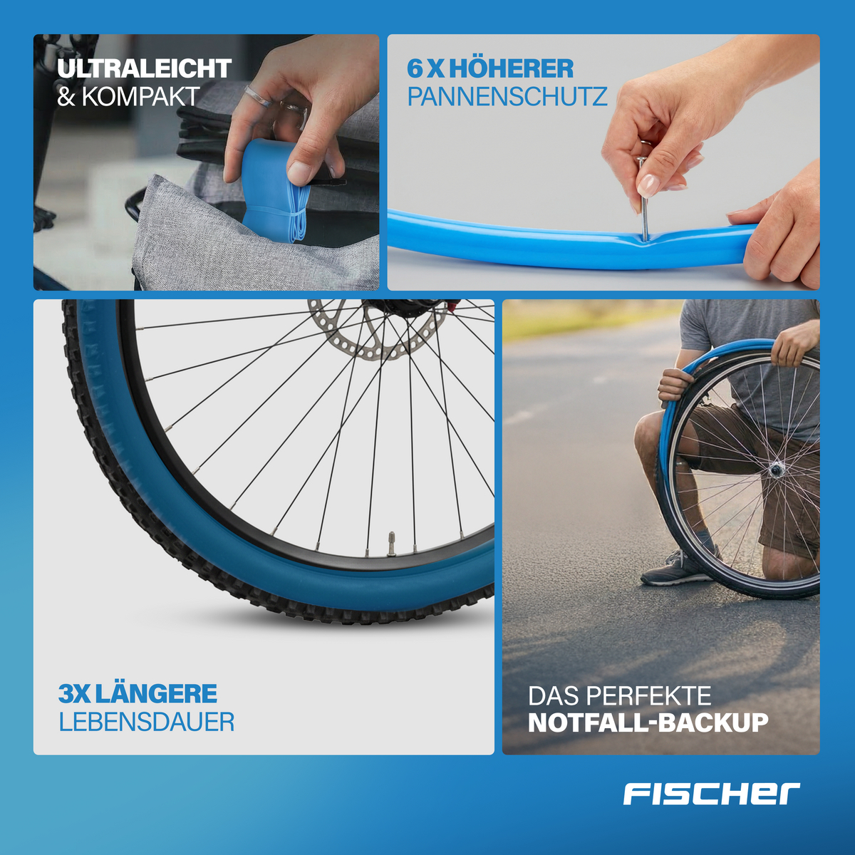 Mit bis zu 70 % weniger Gewicht und einem etwa 65 % kleineren Packmaß eignet sich der TPU-Schlauch ideal als Ersatzschlauch für unterwegs. Die längere Lebensdauer im Vergleich zu Butyl-Schläuchen reduziert zusätzlich den Wartungsaufwand.