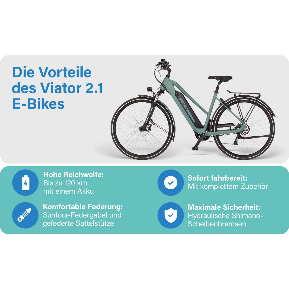 Trekking E-Bike VIATOR 2.1 ACTIVE grün, 28 Zoll, RH 50 cm, 459 Wh