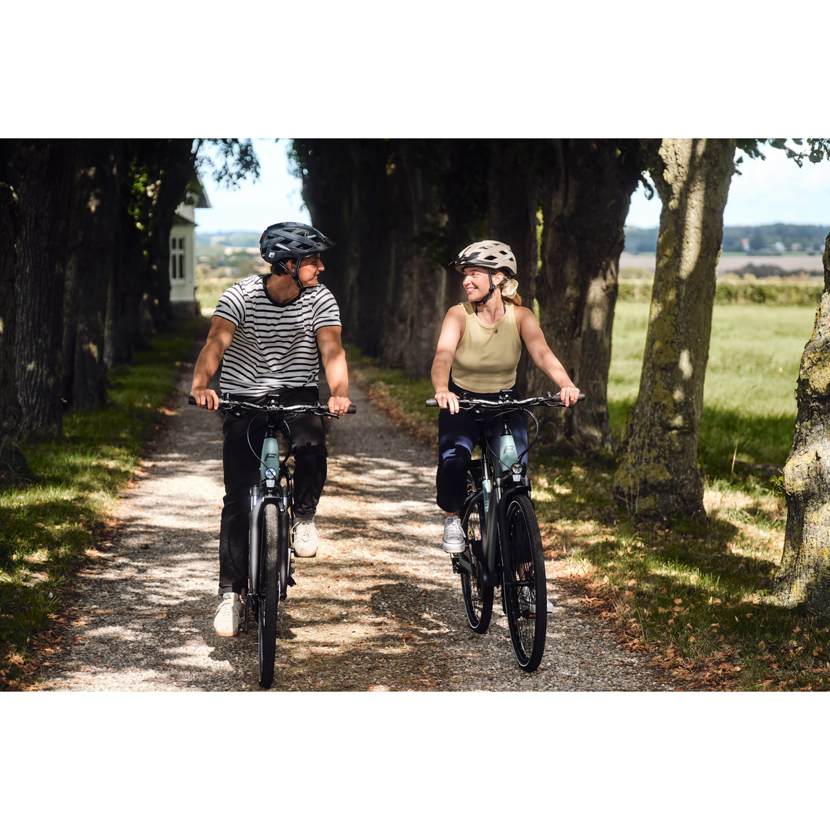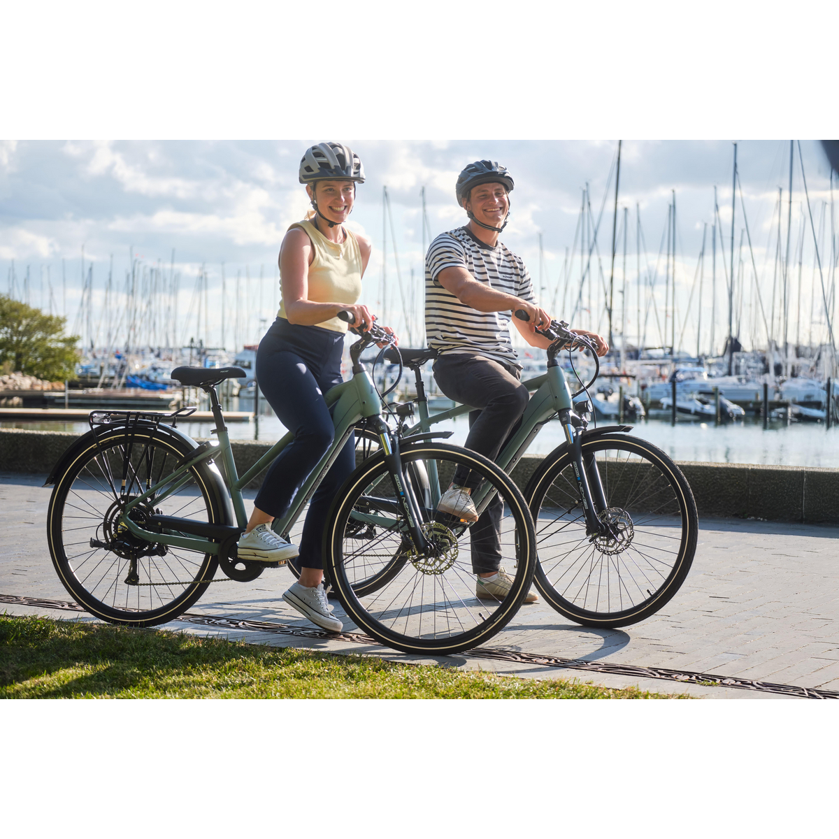 Mit Federgabel und gefederter Sattelstütze werden Unebenheiten zuverlässig ausgeglichen. Dazu kommt das elegante Design in dusk green matt – sportlich, modern und alltagstauglich.