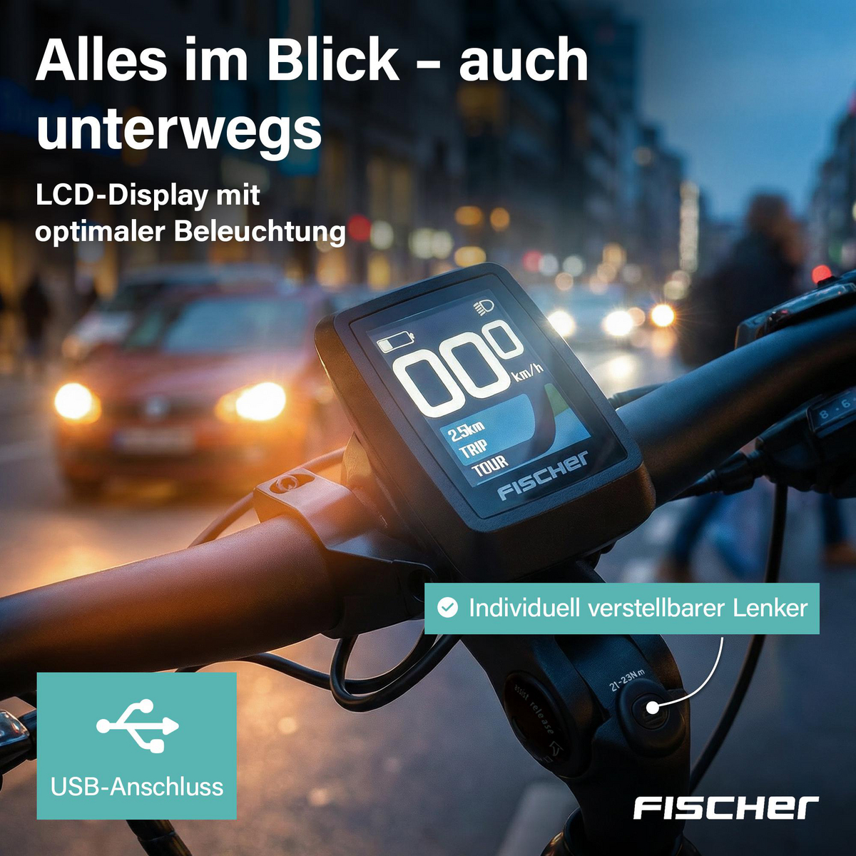 Der FISCHER Drive Heckmotor bietet eine zuverlässige Unterstützung in verschiedenen Stufen und lässt sich bequem über eine separate Bedieneinheit mit schlankem Display steuern. Dies sorgt für eine aufgeräumte und übersichtliche Optik am Lenker.