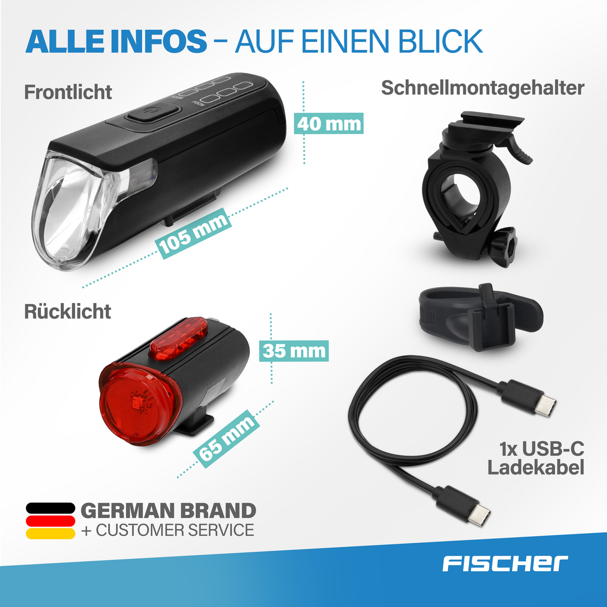 LED-Fahrradlichter haben gegenüber Glüh- oder Halogenlampen den Vorteil, dass sie heller leuchten, langlebiger sind und weniger Energie verbrauchen. Die FISCHER Fahrrad-Beleuchtung hat eine Lebensdauer von bis zu 50.000 Stunden und wird inklusive USB-Ladekabel und Schnellbefestigung geliefert. Sowohl beim Vorderlicht wie auch beim Rücklicht können Sie die Befestigung am Rad lassen und die Fahrradlichter einfach anstecken, wenn Sie sie wirklich brauchen.