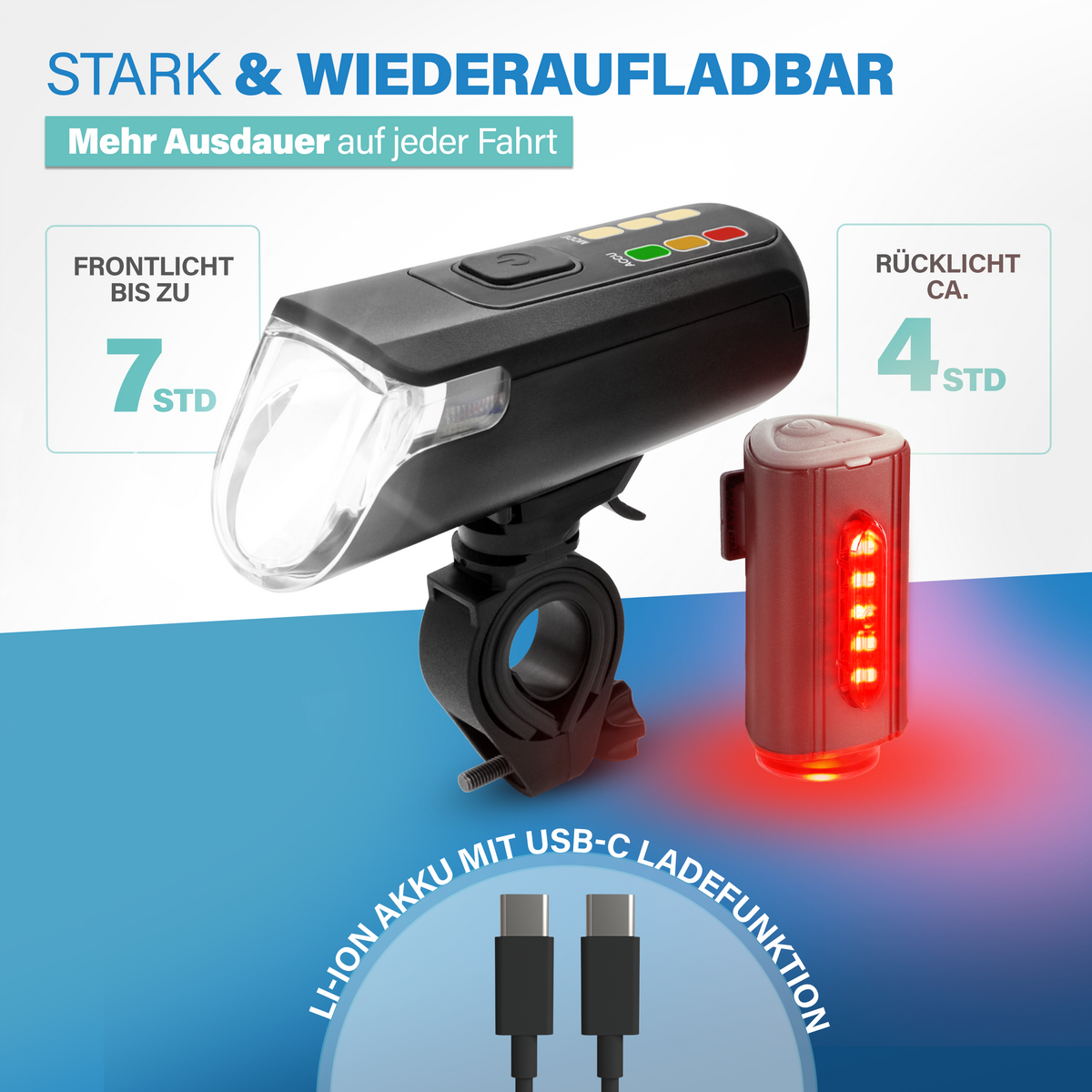 TWIN Akku LED USB Beleuchtungs-Set 60 Lux mit 360 Grad Rückleuchte