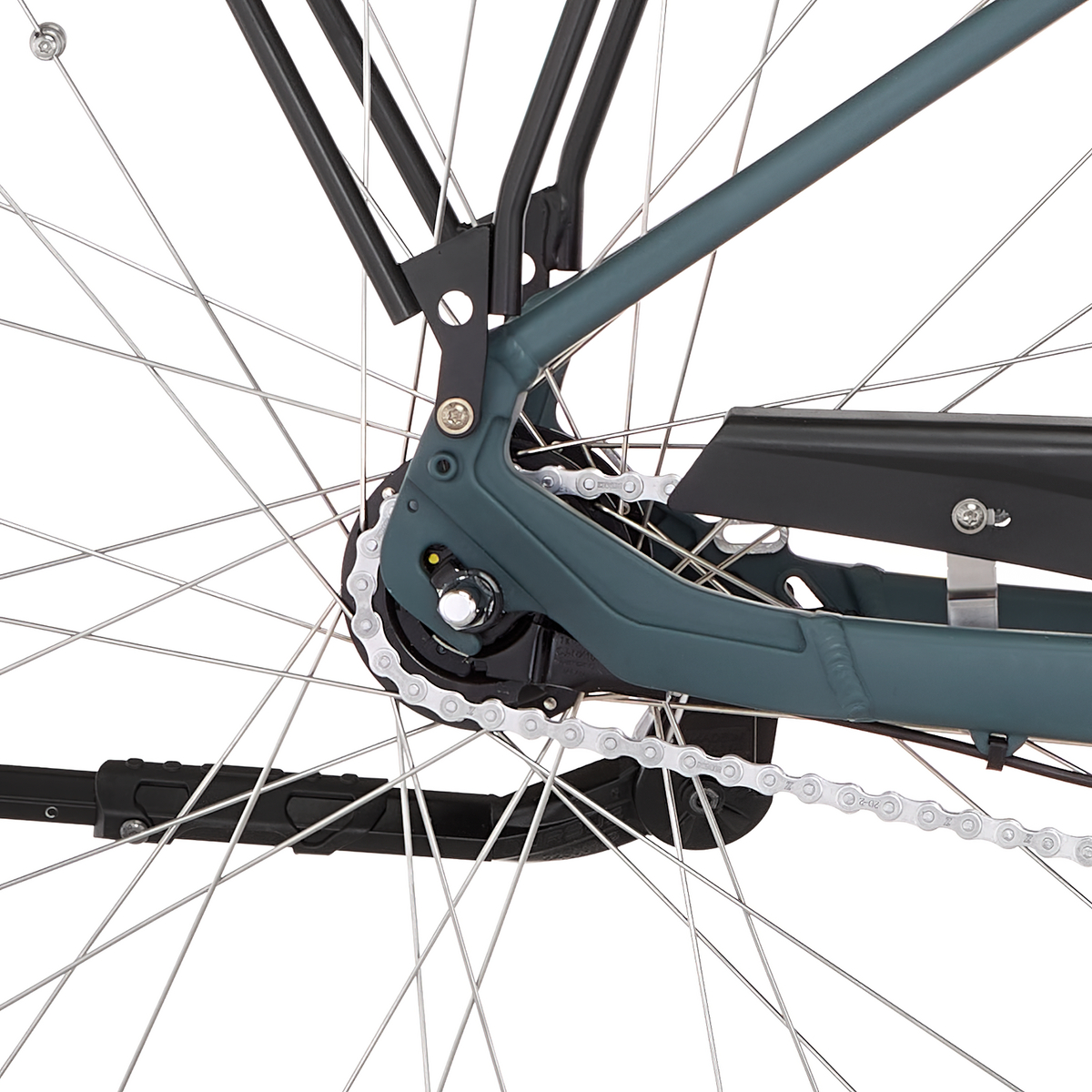 GRÖßE/GEWICHT: 28 Zoll Reifen, 48 cm Rahmenhöhe, E Bike Alurahmen mit komfortablem Tiefeinstieg, Fahrradkorb, nur 26 kg Gewicht, stabiles Elektrofahrrad mit max. Belastung von 150 kg FEDERUNG: Starrgabel für sichere Bodenhaftung SCHALTUNG: Verschleißarme SHIMANO 3-Gang Nexus Nabenschaltung, leichtes und präzises Schalterlebnis durch Drehgriff am Lenker