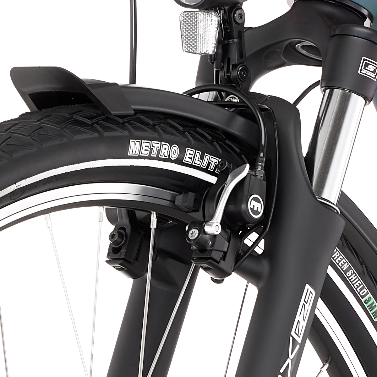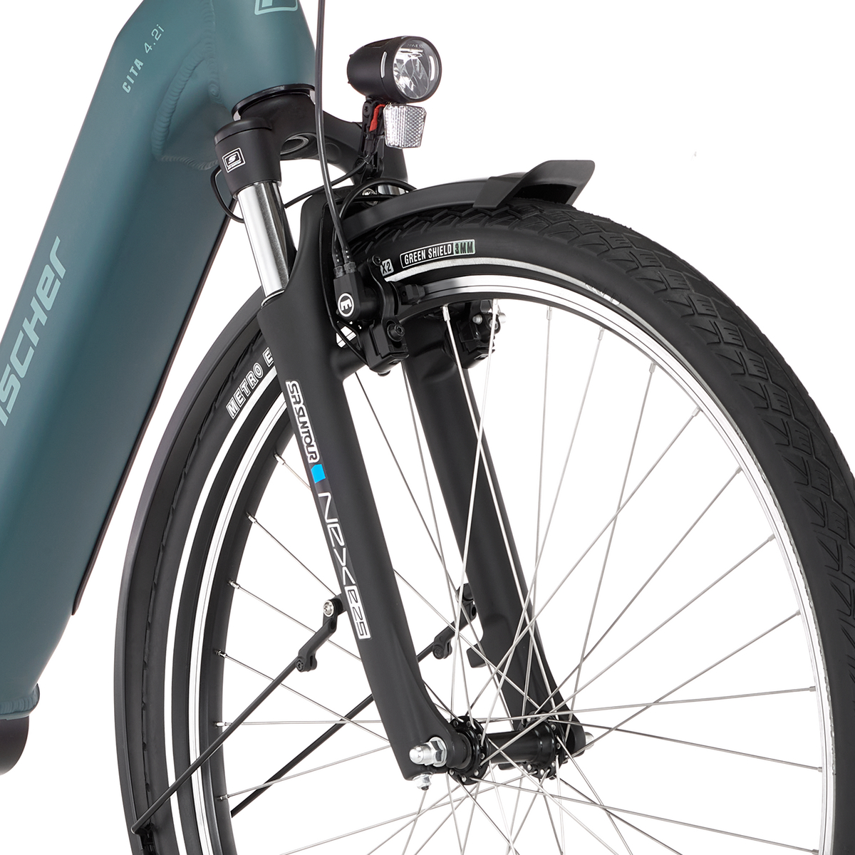 Das ideale E-Bike für alle Stadtbiker. Das vollintegrierte Rahmendesign verleiht dem eleganten E-Cityflitzer eine schlanke Silhouette. Der M200 Mittelmotor von BAFANG mit 65Nm und der seitlich entnehmbare 522 Wh Akku sind kaum sichtbar innerhalb des Rahmens verbaut. Für ein sicheres Gefühl im Stadtverkehr sorgt die zuverlässig zupackende hydraulische Felgenbremse von MAGURA mit Rücktritt, eine 90 Lux Lichtanlage und breite Reifen mit Reflexstreifen. Schaltkomfort und gleichzeitig Gangvielfalt bietet die SHIMANO Nexus 7-Gang Nabenschaltung. Das Schalten der Gänge funktioniert einfach, ohne sich zu verschalten und auch im Stand: Ein enormer Vorteil beim Stopp-and-Go an Ampeln. Angenehmen Fahrkomfort stellt sich über die Federsattelstütze sowie Federgabel ein. Wer beim Fahrradfahren seine Herzfrequenz im Auge behalten möchte, der kann sie dank FISCHER E-Connect App während der Fahrt vom mittig am Lenker platzierten Display ablesen. Perfekt für größere Einkäufe: der Gepäckträger mit zweiter Ebene zur Befestigung von Taschen. Ein zulässiges Gesamtgewicht von 150 kg eignet sich perfekt für größere Zuladungen. Das Modell ist außerdem für unsere FISCHER Kinderanhänger geprüft.