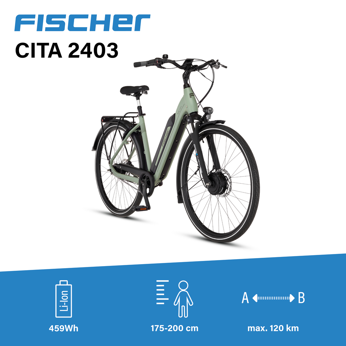 City E-Bike CITA 2403 ACTIVE grün, 28 Zoll, RH 50 cm, 459 Wh
