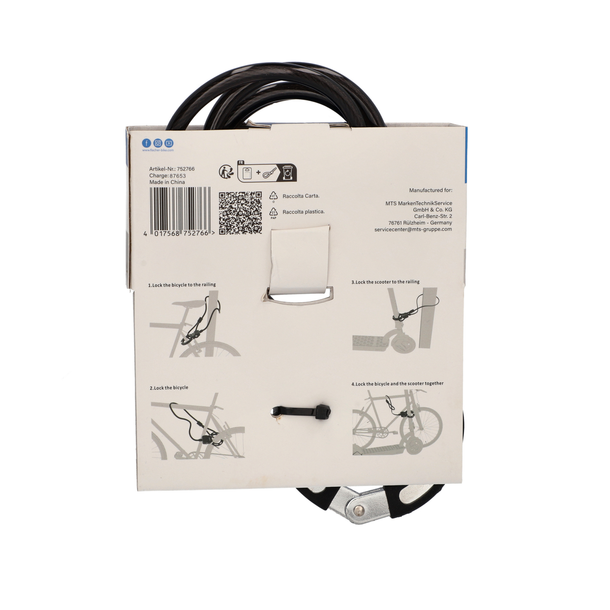 Die Kombination aus Schelle und Schlaufe macht das Schloss universell einsetzbar, egal ob an Laternen, Geländern oder Fahrradständern. Das spiralisiert aufgewickelte Seil spart Platz beim Transport, während die dezente schwarze Farbgebung zu jedem Fahrradstil passt.