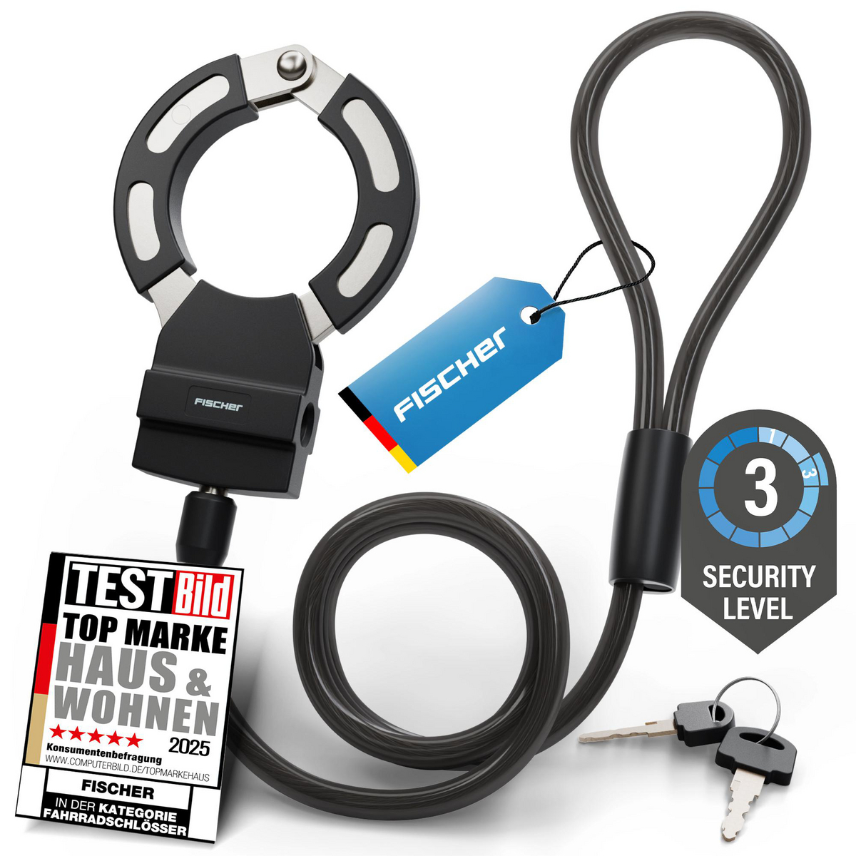 Sicher, flexibel und kompakt – das FISCHER Handschellenschloss RK110/8 schützt dein Fahrrad oder E-Scooter zuverlässig vor Diebstahl. Das 8 mm starke Stahlseil bietet hohe Widerstandskraft gegen Aufbruchversuche und ist dank seiner robusten Verarbeitung besonders langlebig.