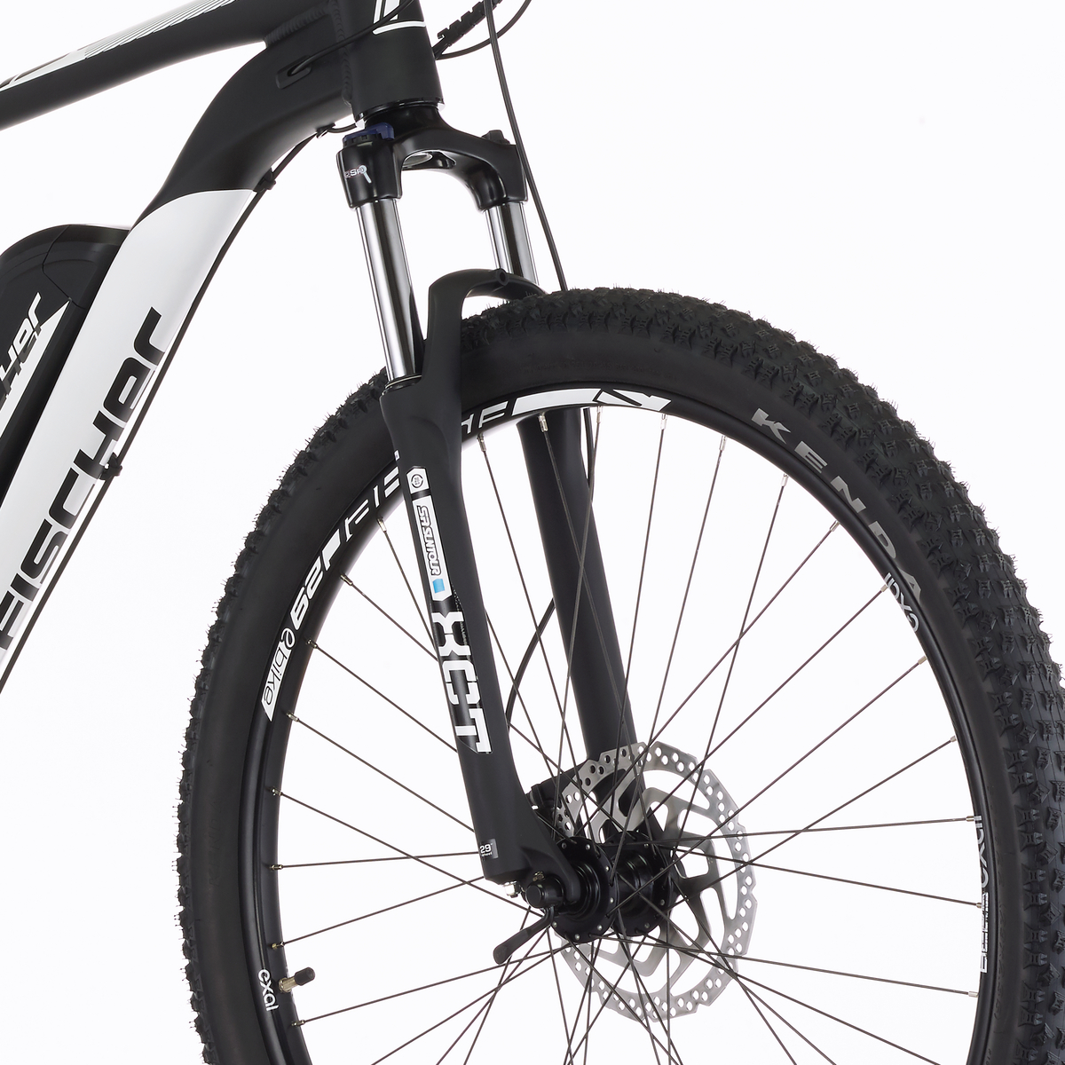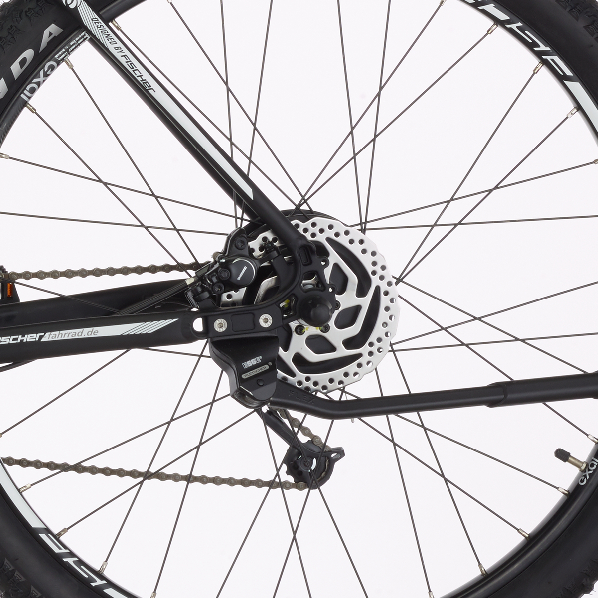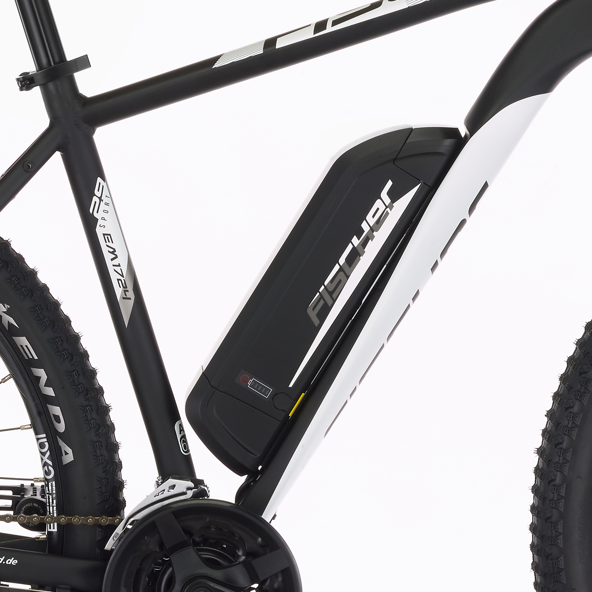 Das FISCHER MONTIS EM 1724 ist mit seinen hydraulischen Scheibenbremsen, dem Lichtpaket und dem angenehm sportlichen MTB-Sattel die perfekte Wahl für deine abenteuerlichen Trailrides. Mit nur 26 kg kg Gewicht und einer Belastbarkeit von bis zu 125 kg ist es robust und dennoch leicht zu transportieren. Die belastbare SunTour XCT-HLO Federgabel und die zuverlässige Shimano 8-Gang Deore garantieren eine sportliche und schnelle Fahrt. Der leistungsstarke 48 V, 557 Lithium-Ionen-Akku bietet dir bis zu 120 km* Reichweite und kann durch die semi-integrierte Bauweise einfach entnommen und aufgeladen werden. Zusätzlich bietet dir FISCHER eine 24-monatige Akku-Garantie. Mit Hilfe des modernen Bafang LCD 1300 Displays kannst du die Unterstützung des dynamischen Bafang RM G05.250.DC Heckmotors mit 45Nm Drehmoment leicht selbst steuern und erhältst alle wichtigen Informationen auf einen Blick - Fahrspaß garantiert.