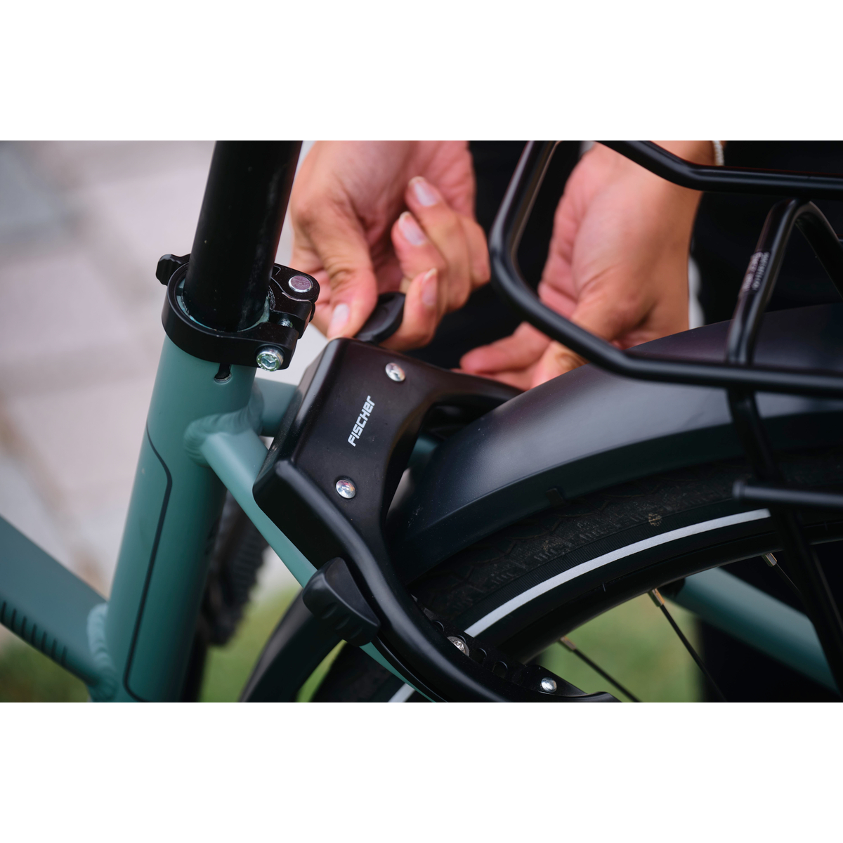 Der FISCHER Drive Heckmotor bietet eine zuverlässige Unterstützung in verschiedenen Stufen und lässt sich bequem über eine separate Bedieneinheit mit schlankem Display steuern. Dies sorgt für eine aufgeräumte und übersichtliche Optik am Lenker.