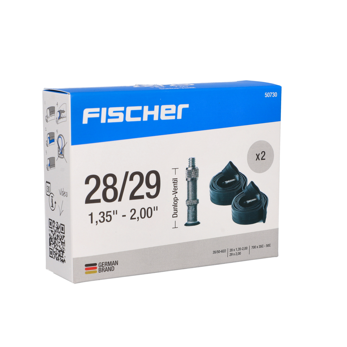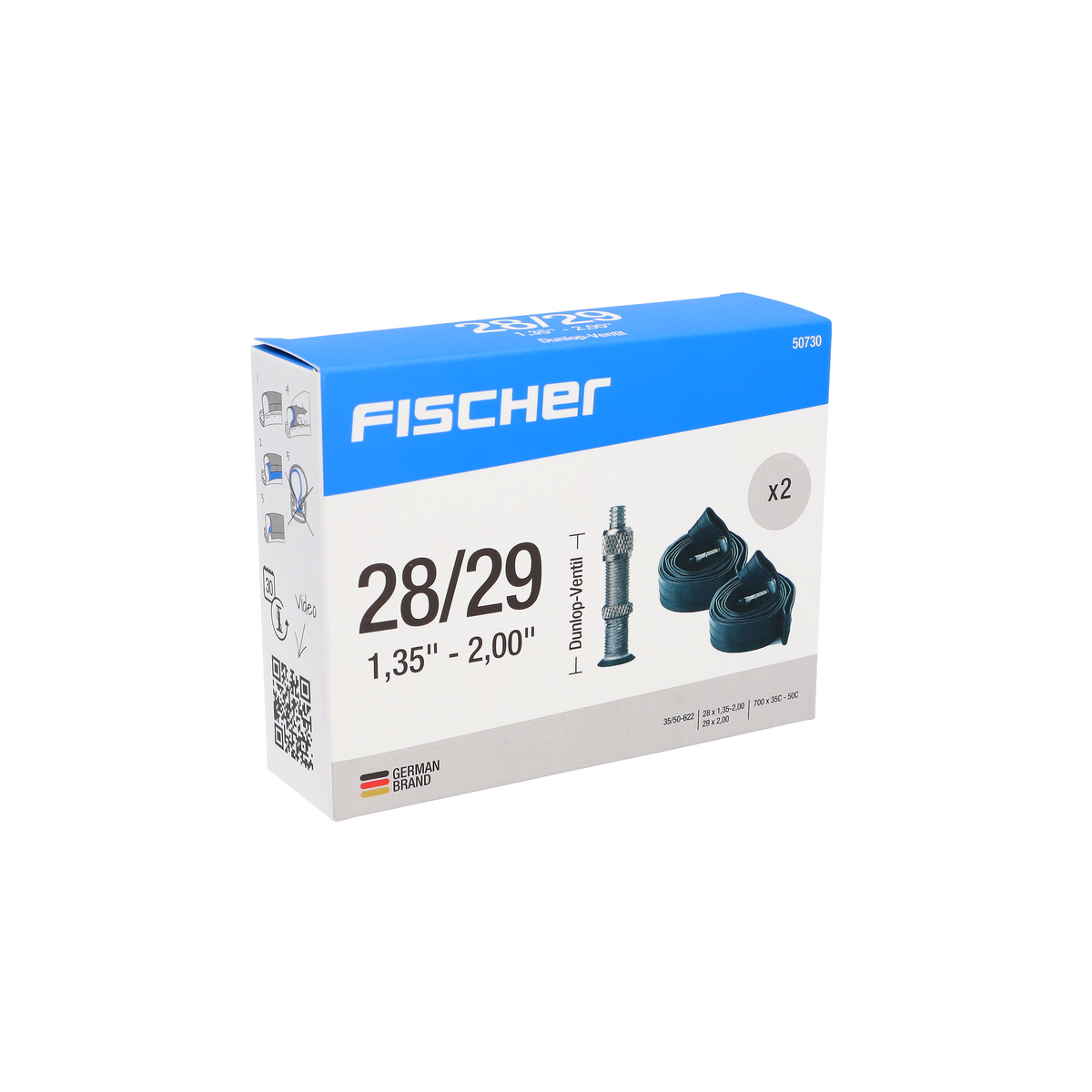 FISCHER bietet mit diesem Doppelpack Schläuche für das Fahrrad einen hochwertigen Satz für viele Situationen an. So sind die Schläuche für Fahrräder mit Reifendurchmessern von 28 bis 29″ geeignet. Das hochelastische Material erlaubt die Montage auf allen Felgen, die sich in diesem Größenbereich bewegen. In diesem Doppelpack ist ein Schlauch für jeden Reifen eines Fahrrads vorhanden. Die Schlauchbreite bewegt sich in einem Bereich von 35 bis 50 mm nach ETRTO. Somit handelt es sich bei diesem Fahrrad Schlauchset im Doppelpack um Varianten mit mittlerer Breite. Diese finden zum Beispiel bei Trekking- und Rennrädern oder auch bei Mountainbikes Verwendung. Ebenfalls nach der ETRTO-Norm ist der Reifeninnendurchmesser mit 622 mm angegeben. FISCHER testet jeden Schlauch in diesem Doppelpack auf seine Luftdichtigkeit. So werden die Schläuche unter Druck 24 Stunden einer Qualitätskontrolle unterzogen. Das Fahrrad Schlauchset ist aus Gummi, wobei eine hochwertige Mischung zum Einsatz kommt. Dies ist ein weiterer Indikator für die Belastbarkeit der Schläuche. Das Ventil ist vom Typ Dunlop.