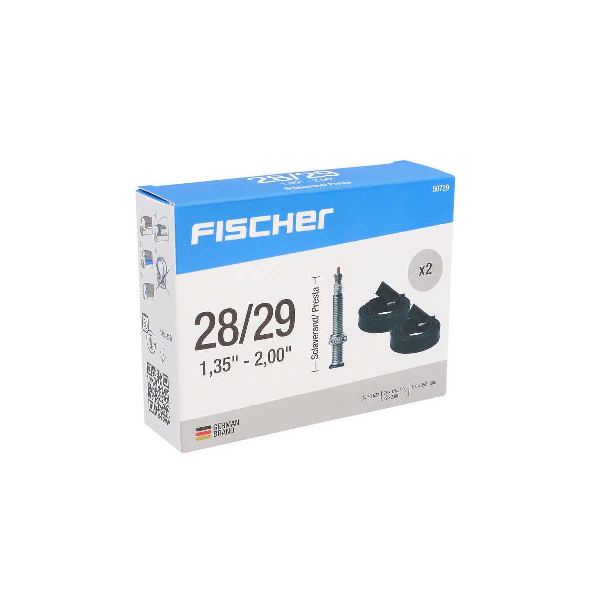 FISCHER bietet mit diesem Doppelpack Schläuche für das Fahrrad einen hochwertigen Satz für viele Situationen an. So sind die Schläuche für Fahrräder mit Reifendurchmessern von 28 bis 29″ geeignet. Das hochelastische Material erlaubt die Montage auf allen Felgen, die sich in diesem Größenbereich bewegen. In diesem Doppelpack ist ein Schlauch für jeden Reifen eines Fahrrads vorhanden. Die Schlauchbreite bewegt sich in einem Bereich von 35 bis 50 mm nach ETRTO. Somit handelt es sich bei diesem Fahrrad Schlauchset im Doppelpack um Varianten mit mittlerer Breite. Diese finden zum Beispiel bei Trekking- und Rennrädern oder auch bei Mountainbikes Verwendung. Ebenfalls nach der ETRTO-Norm ist der Reifeninnendurchmesser mit 622 mm angegeben. FISCHER testet jeden Schlauch in diesem Doppelpack auf seine Luftdichtigkeit. So werden die Schläuche unter Druck 24 Stunden einer Qualitätskontrolle unterzogen. Das Fahrrad Schlauchset ist aus Gummi, wobei eine hochwertige Mischung zum Einsatz kommt. Dies ist ein weiterer Indikator für die Belastbarkeit der Schläuche. Das Ventil ist vom Typ Sclaverand, das auch französisches Ventil genannt wird. So lässt sich der Schlauch problemlos mit den meisten Handfahrradpumpen aufpumpen.