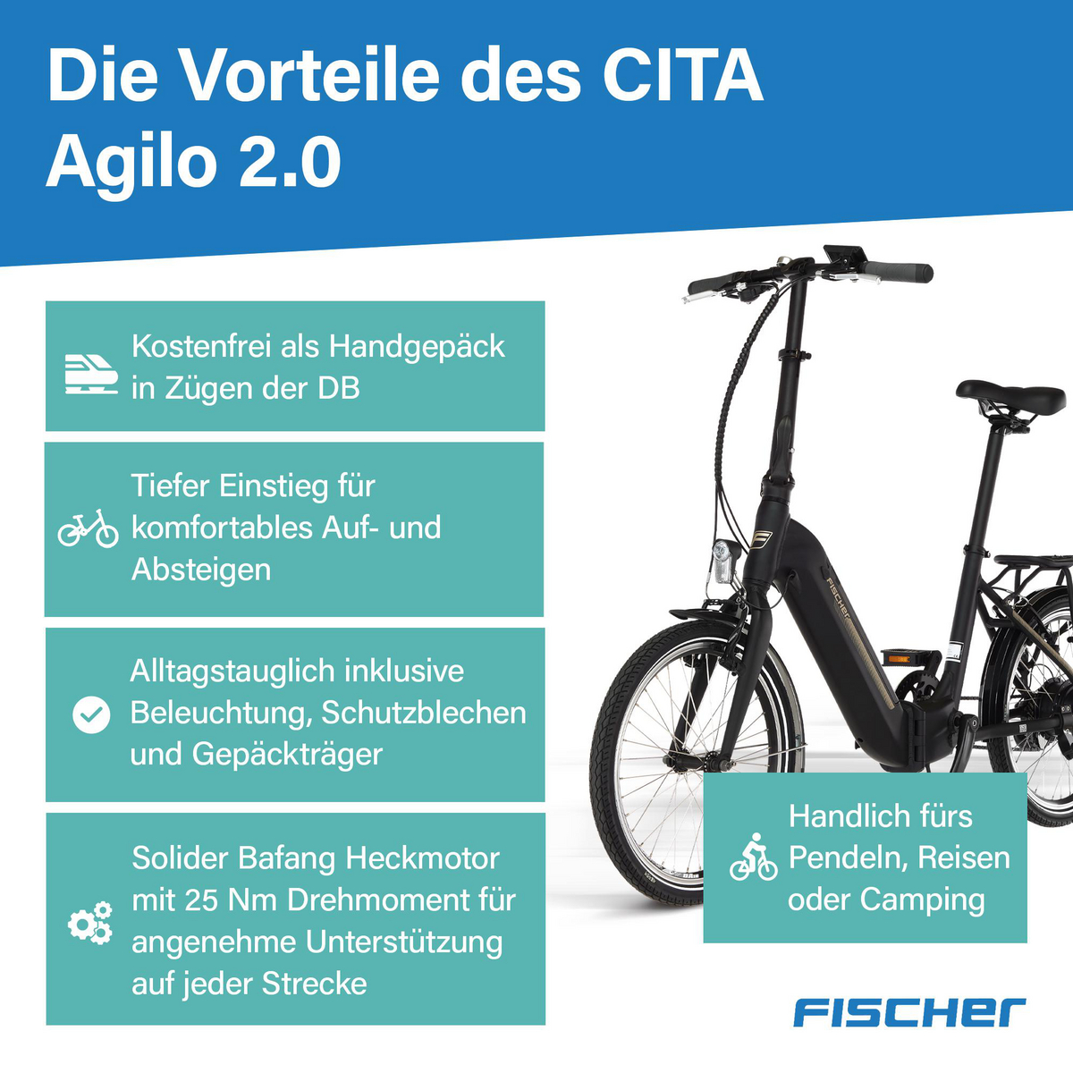 Faltrad Agilo MOVE 2.0 schwarz, RH 36 cm, 20 Zoll, 374 Wh