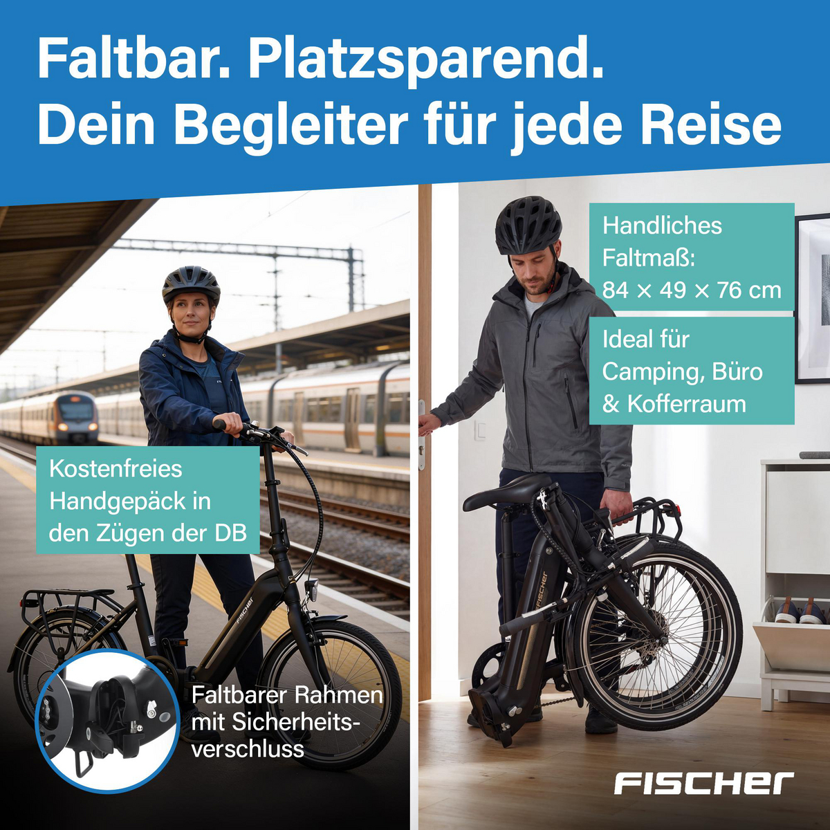 Das FISCHER Faltrad AGILO MOVE 2.0 ist ein kompaktes 20 Zoll E-Faltrad mit tiefem Einstieg für flexible Mobilität im Alltag. Es richtet sich an Pendlerinnen und Pendler sowie an alle, die ein platzsparendes E-Bike für Stadt, Reise oder Camping suchen. Mit seinem geringen Gewicht von 20 kg und dem handlichen Faltmaß von 84 × 49 × 76 cm lässt es sich in wenigen Sekunden zusammenklappen und einfach im Auto, in der Bahn oder im Wohnmobil verstauen.