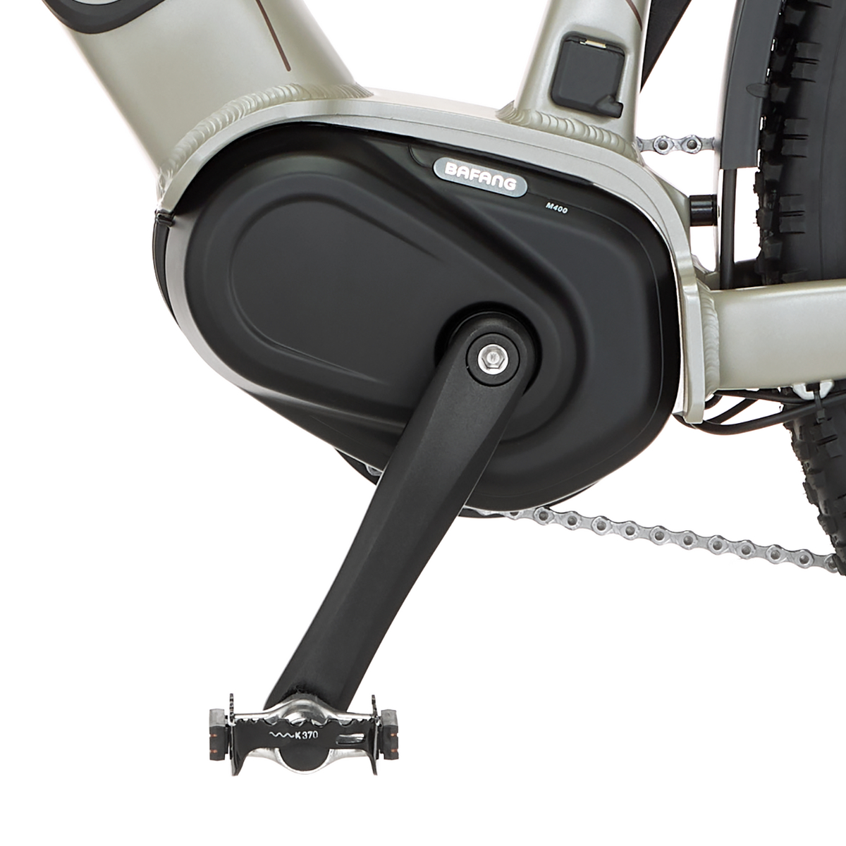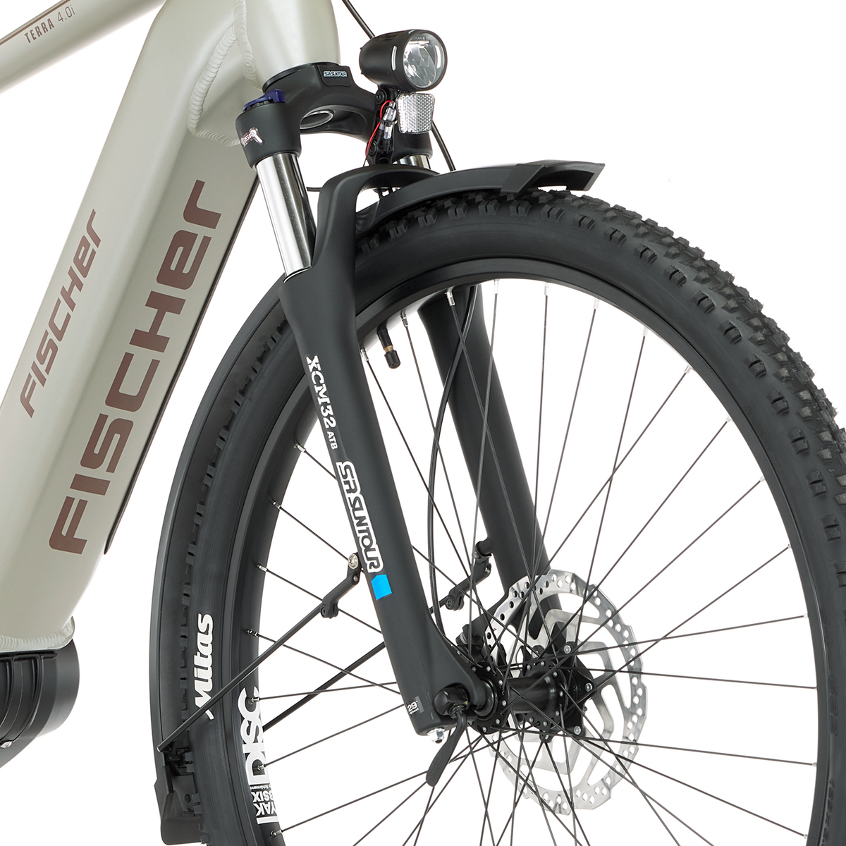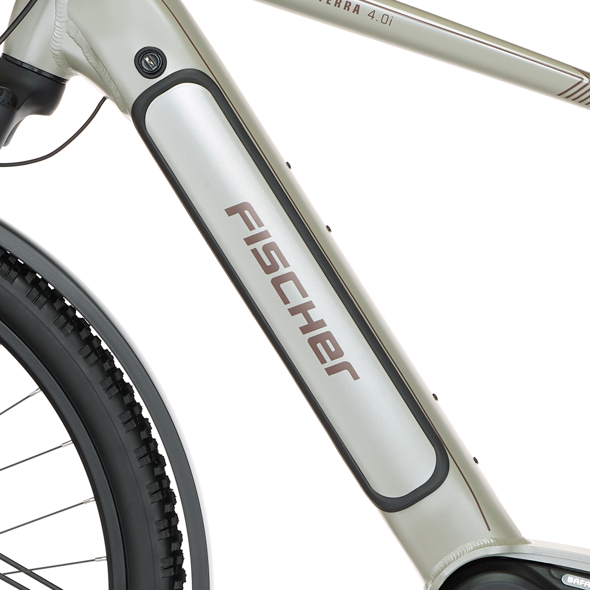 Ob Asphalt oder Schotterpiste, das All-Terrain Bike fühlt sich mit seinen 54 mm breiten Reifen auf nahezu jedem Untergrund wohl und bietet ein breites Einsatzspektrum. Der leichte und extrem langlebige BAFANG M400 unterstützt mit seinen 80Nm harmonisch und zuverlässig. Gemeinsam mit dem vollintegrierten 630 Wh Akku sorgt der leistungsstarke Mittelmotor dafür, dass Arbeitswege als auch längere Ausflüge mit dem TERRA 4.0i zum langanhaltenden Genuss werden. Der Allrounder ist StVZO-konform mit einem 90 Lux LED Scheinwerfer, hydraulischen Scheibenbremsen und Schutzblechen ausgestattet. So kommt man sicher ans Ziel und kann mit einem zulässigen Gesamtgewicht von 135 kg noch locker Gepäck am Gepäckträger befestigen. Ein FISCHER Spiralschloss ist im Lieferumfang enthalten. Das Modell ist außerdem für FISCHER Kinderanhänger geprüft.