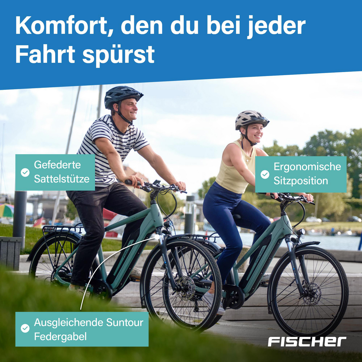 Mit Federgabel und gefederter Sattelstütze werden Unebenheiten zuverlässig ausgeglichen. Dazu kommt das elegante Design in dusk green matt – sportlich, modern und alltagstauglich.