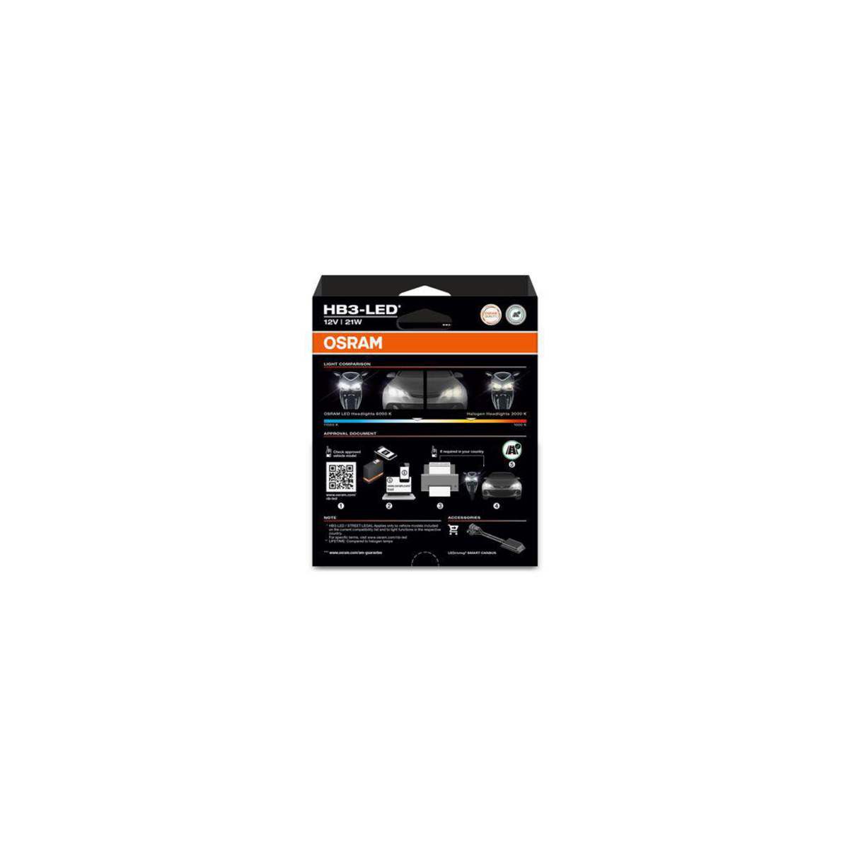 Mit der straßenzugelassenen NIGHT BREAKER LED SMART, ihrem kompakten Design, der raffinierten Bauweise und einer außergewöhnlichen Helligkeit ist es jetzt möglich in noch mehr Fahrzeugen, von traditionellen Halogenlampen, auf fortschrittliche OSRAM LED-Technik umzurüsten. Rüste jetzt die Funktion des Abblend- und Fernlichts deines Fahrzeuges auf modernste LED-Technologie um. Diese LED-Austauschlampen sind als Ersatz für traditionelle Lampen und -Sockel geeignet. Sie bieten ein modernes und helles weißes Licht mit einer Farbtemperatur von bis zu 6000 Kelvin und beeindrucken mit extra Helligkeit im Vergleich zu traditionellen Halogenlampen, während die Blendung anderer Verkehrsteilnehmer die zulässigen Maximalwerte um bis zu 50% unterschreitet. Im Vergleich zu konventionellen Leuchtmitteln, verbrauchen diese LED Retrofit-Lampen bis zu 60% weniger Energie und überzeugen dank der LED-Technologie und des speziell entwickelten vibrationsresistenten Designs, mit einer bis zu 6-mal längeren Lebensdauer. Ersetze jetzt traditionelle Fahrzeuglampen durch die kompakte NIGHT BREAKER LED SMART von OSRAM und erlebe zukunftsweisende Helligkeit mit Straßenzulassung. Zusätzlich bietet OSRAM auf alle NIGHT BREAKER LED-Nachrüstlampen eine Garantie