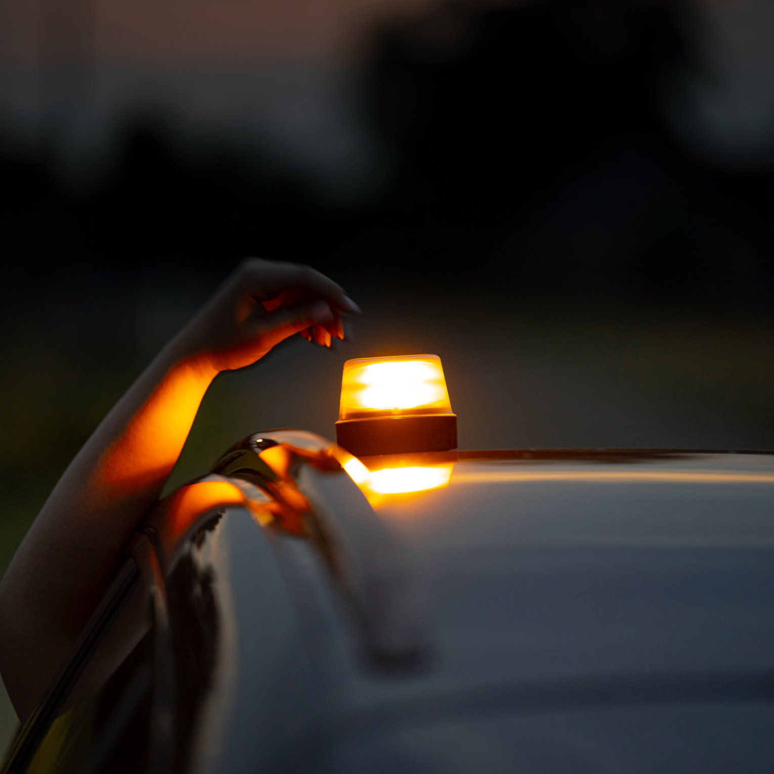 Dank der Magnetfunktion kann die LED-Warnleuchte direkt am Fahrzeug angebracht werden